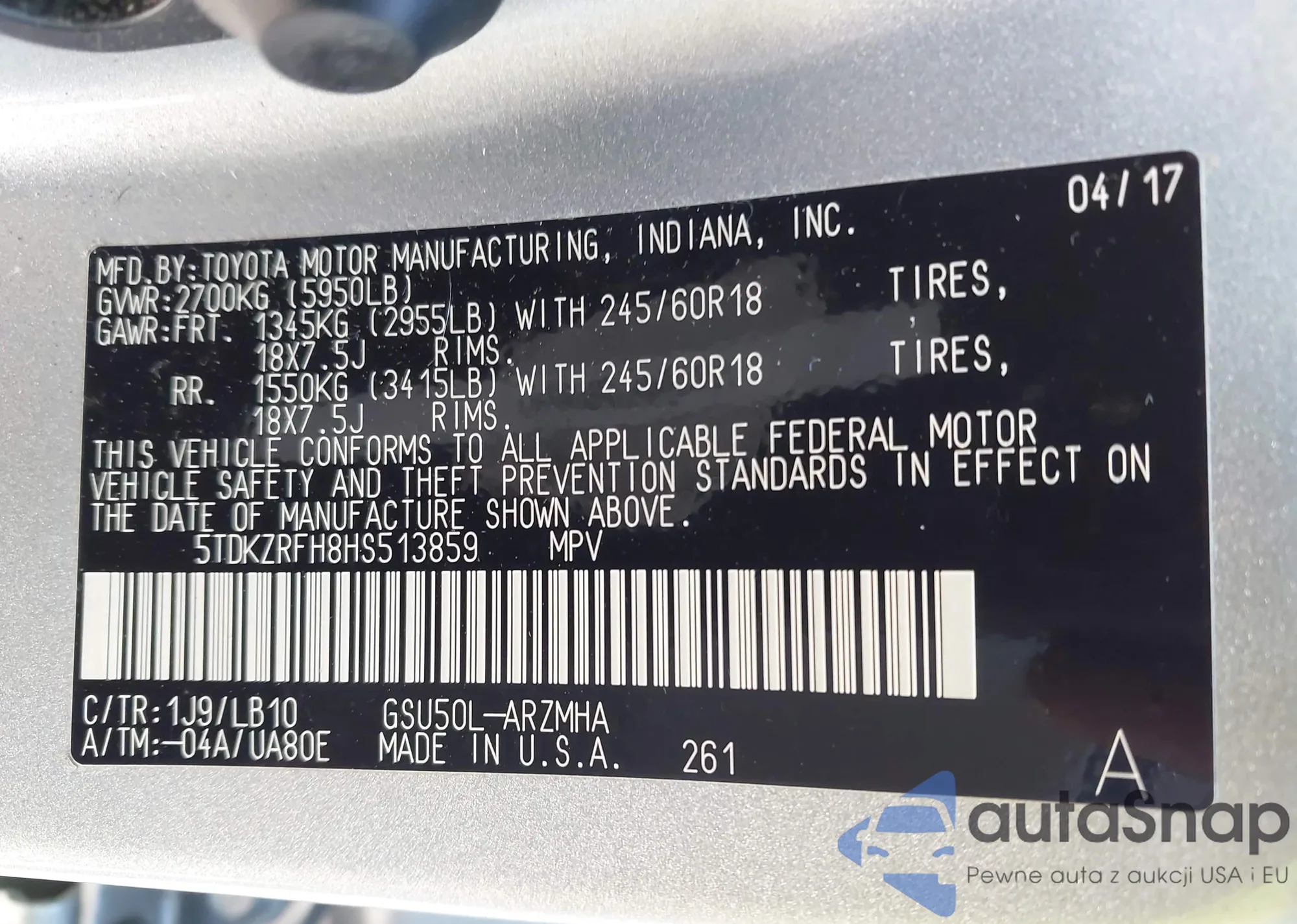 • VIN KNAFU4A20D5663970