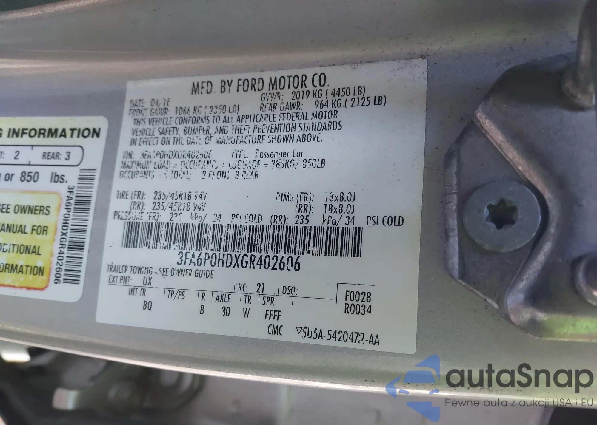 LOT: 44145270 VIN: 3FA6P0HDXGR402606