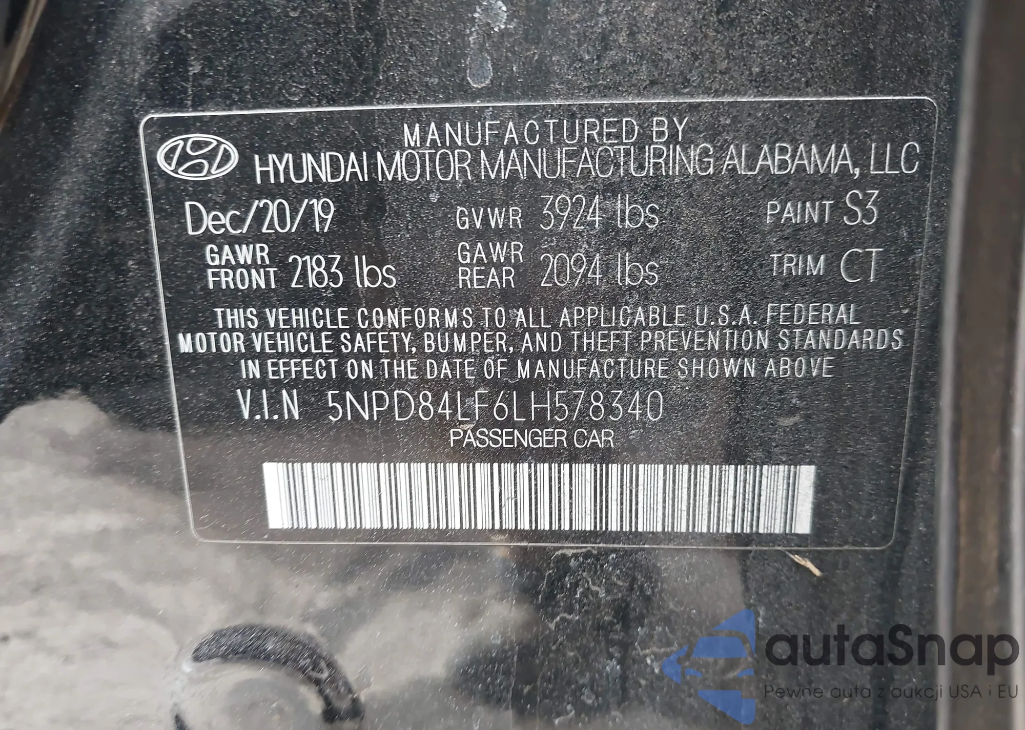 • VIN KM8J23A4XLU088498
