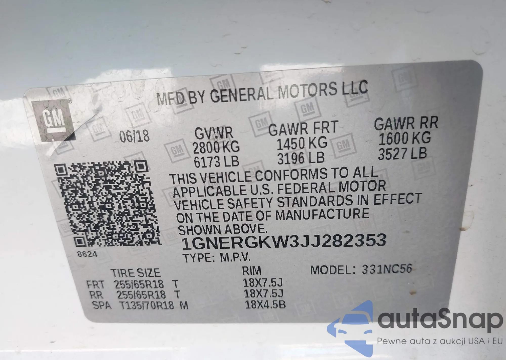 LOT: 44229922 VIN: 1GNERGKW3JJ282353