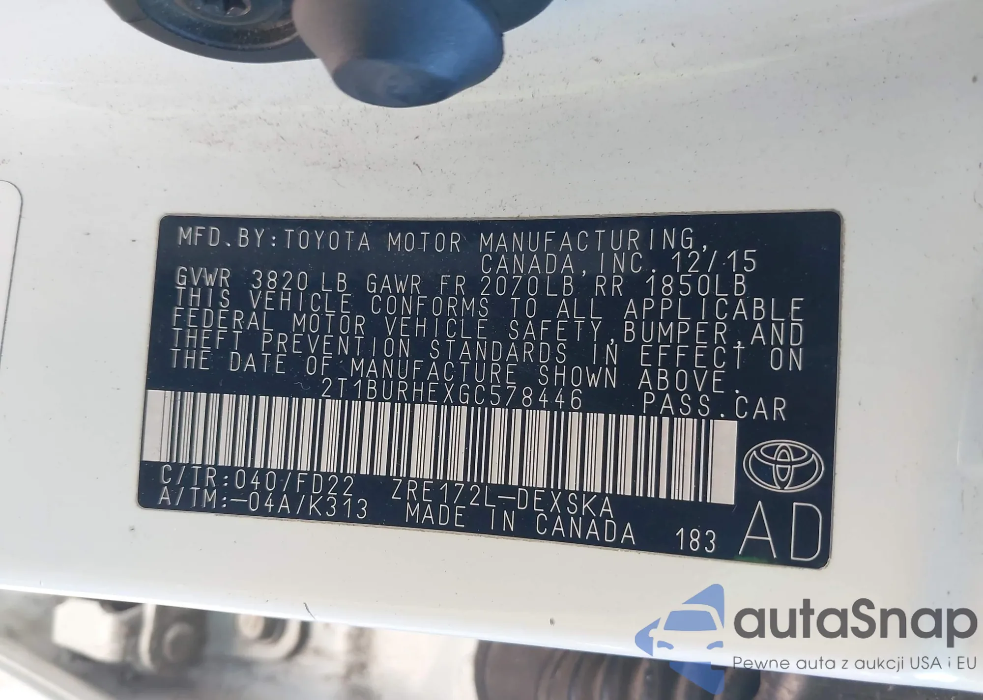 • VIN 2T1BURHEXGC578446