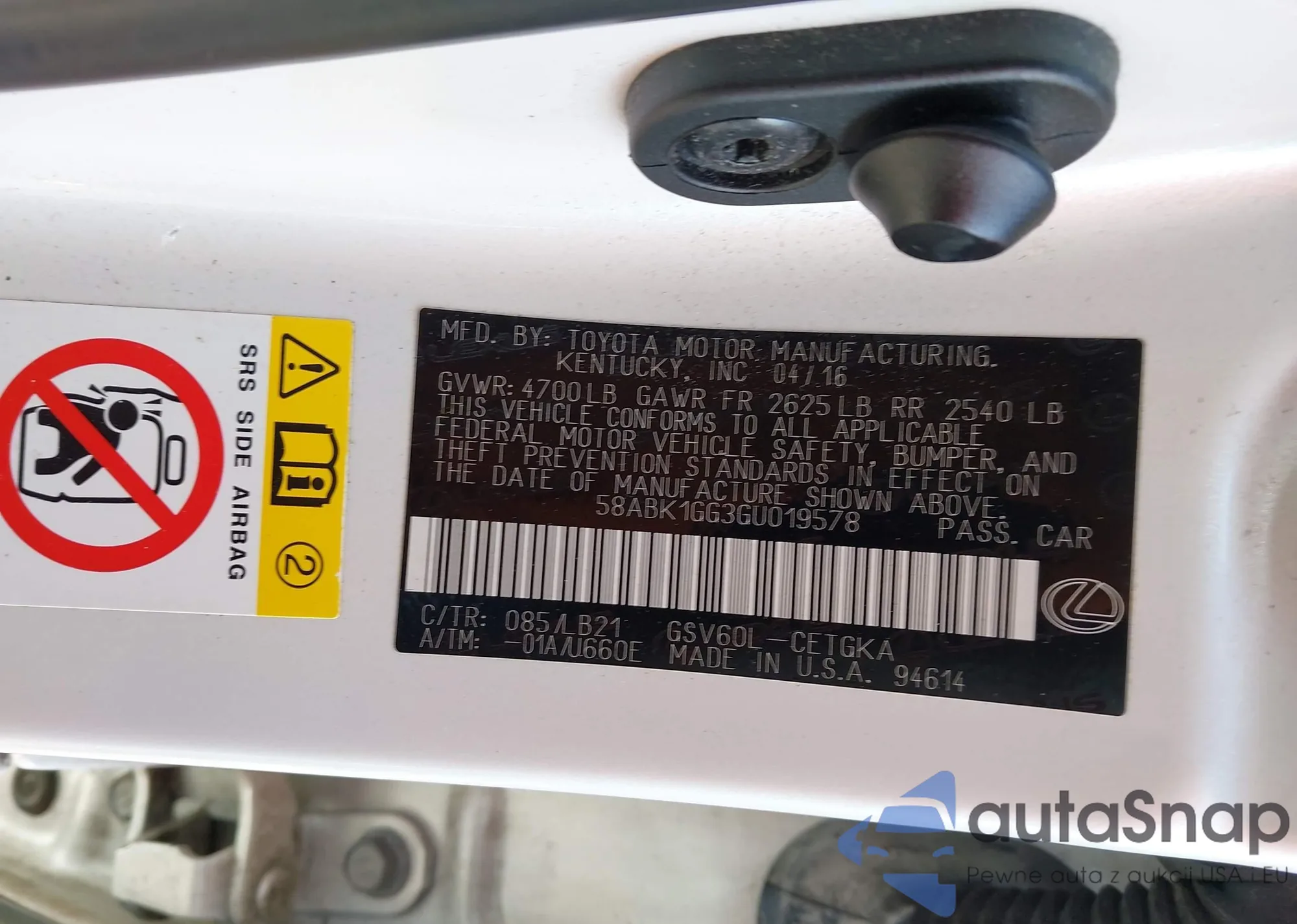 LOT: 44241821 VIN: 58ABK1GG3GU019578