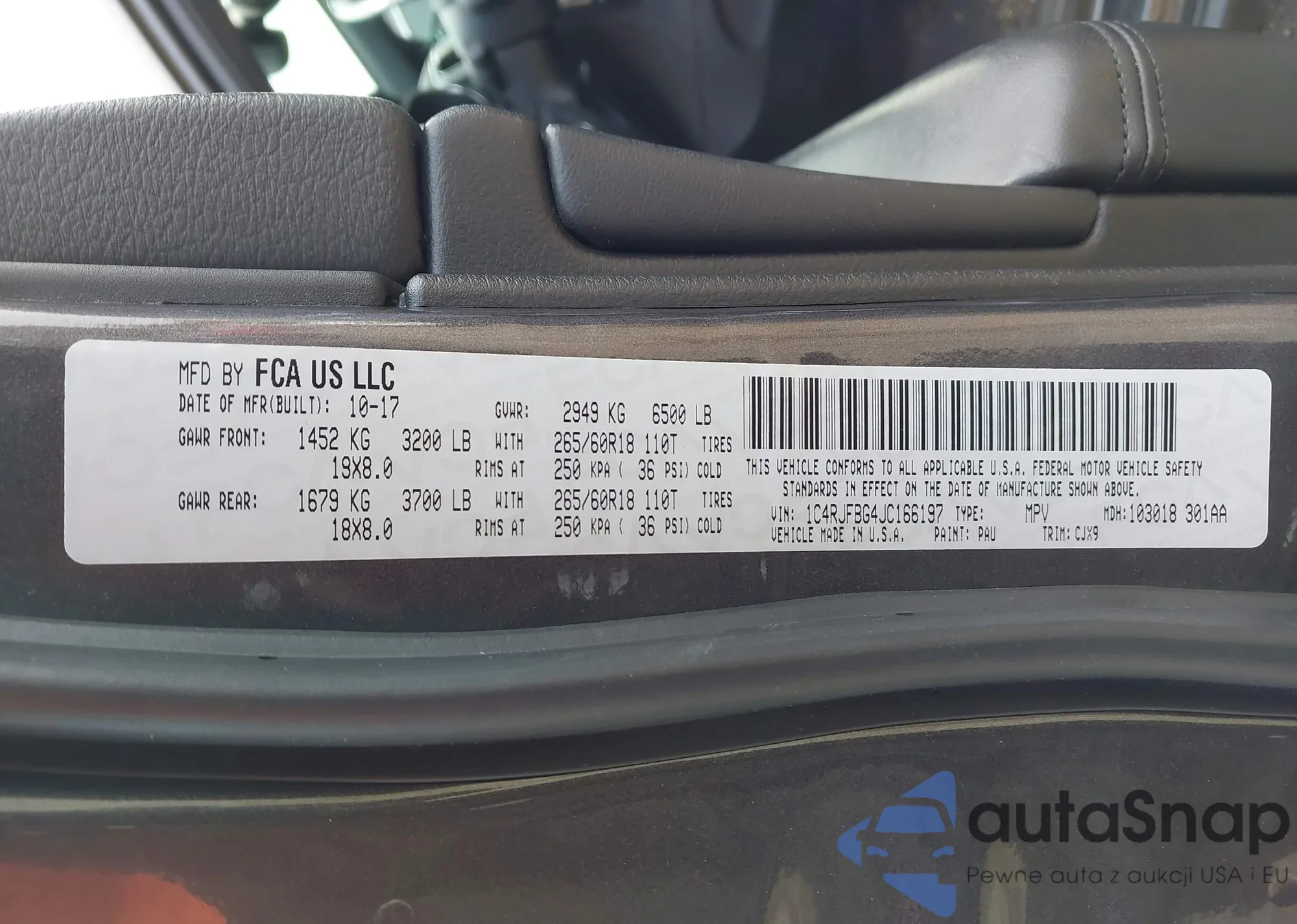 • VIN 1C4RJFBG4JC166197
