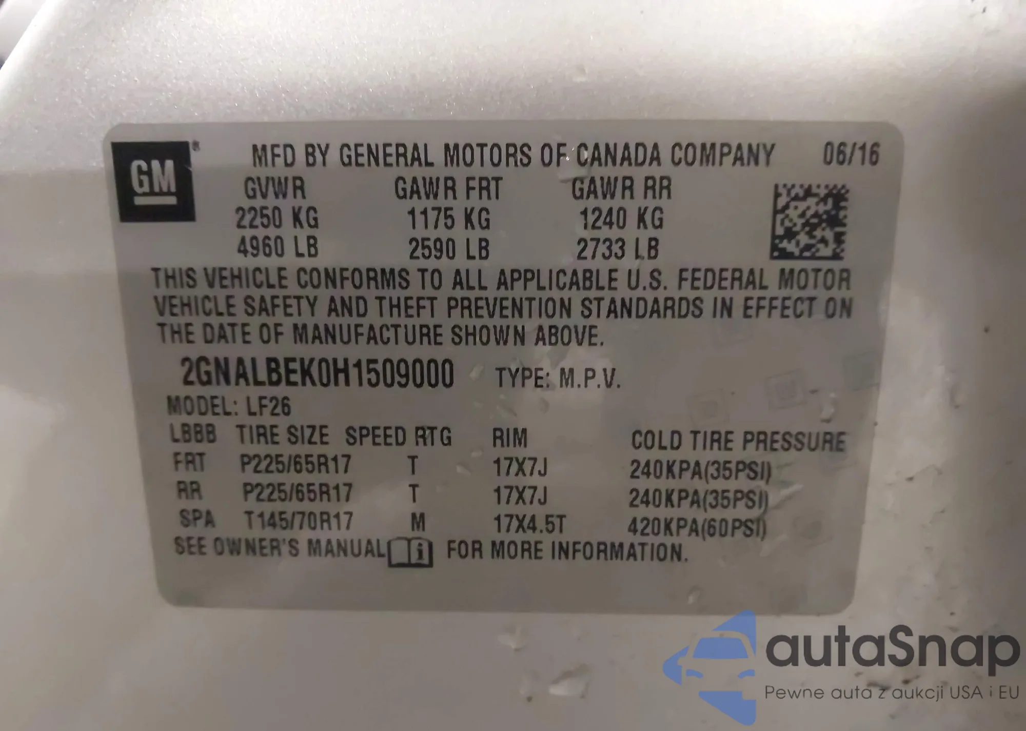 LOT: 43919246 VIN: KL77LJE25RC120083
