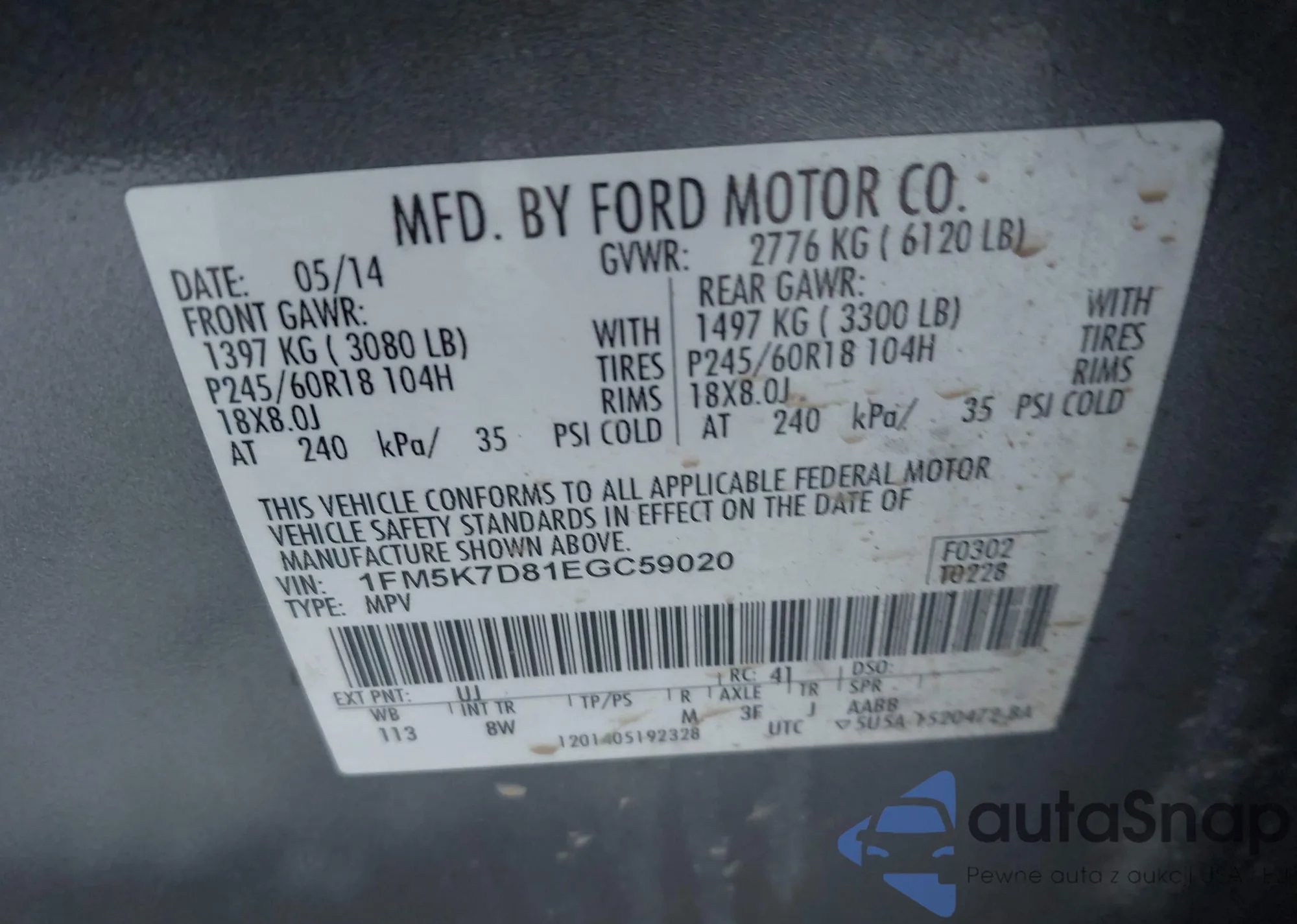 • VIN 1FM5K7D81EGC59020