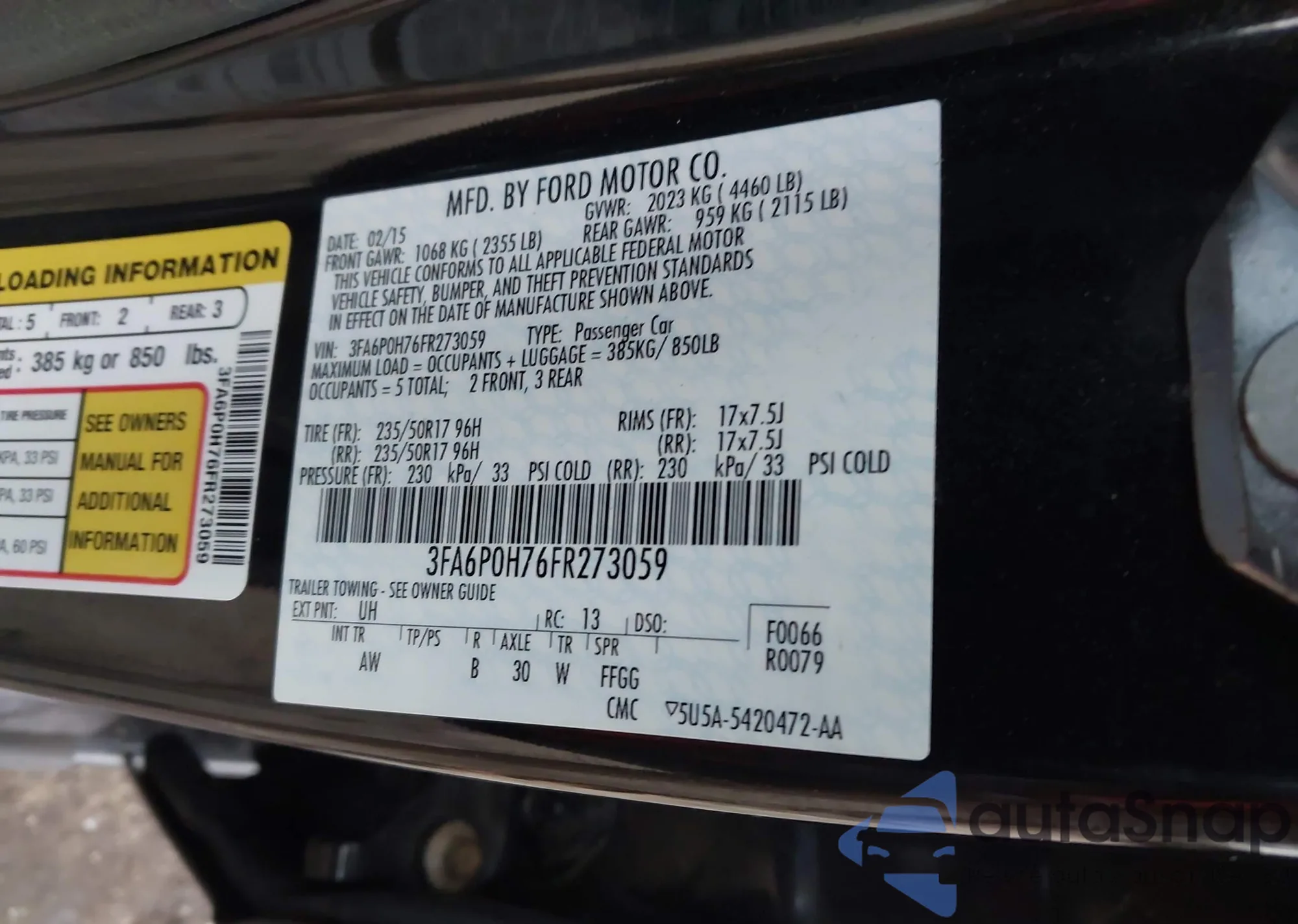 • VIN 3FA6P0H76FR273059