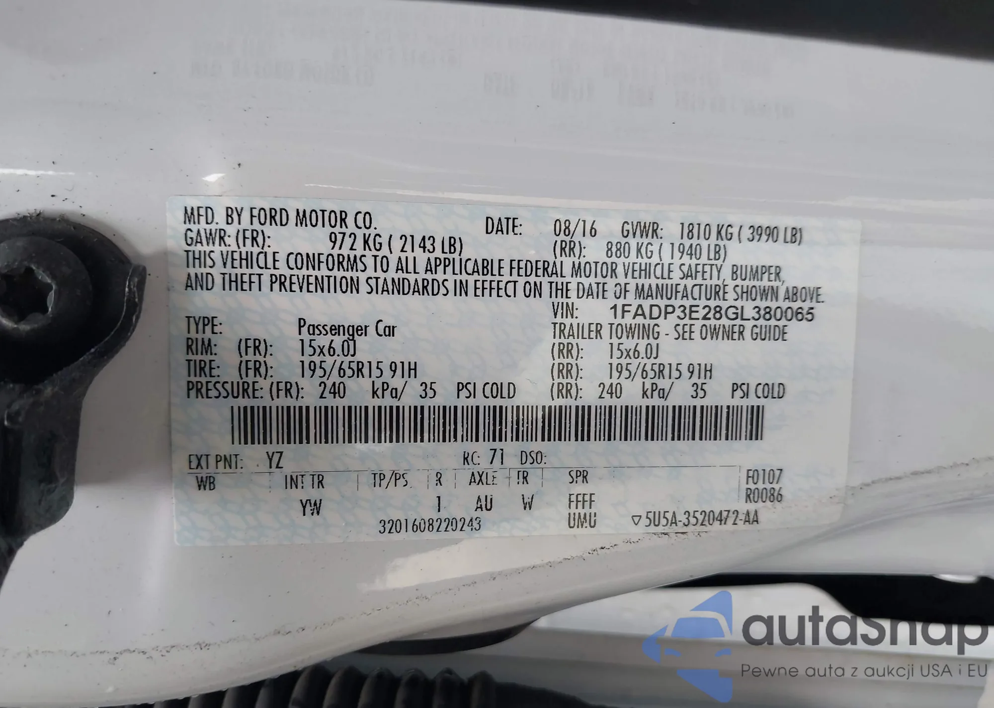 • VIN 1FADP3E28GL380065