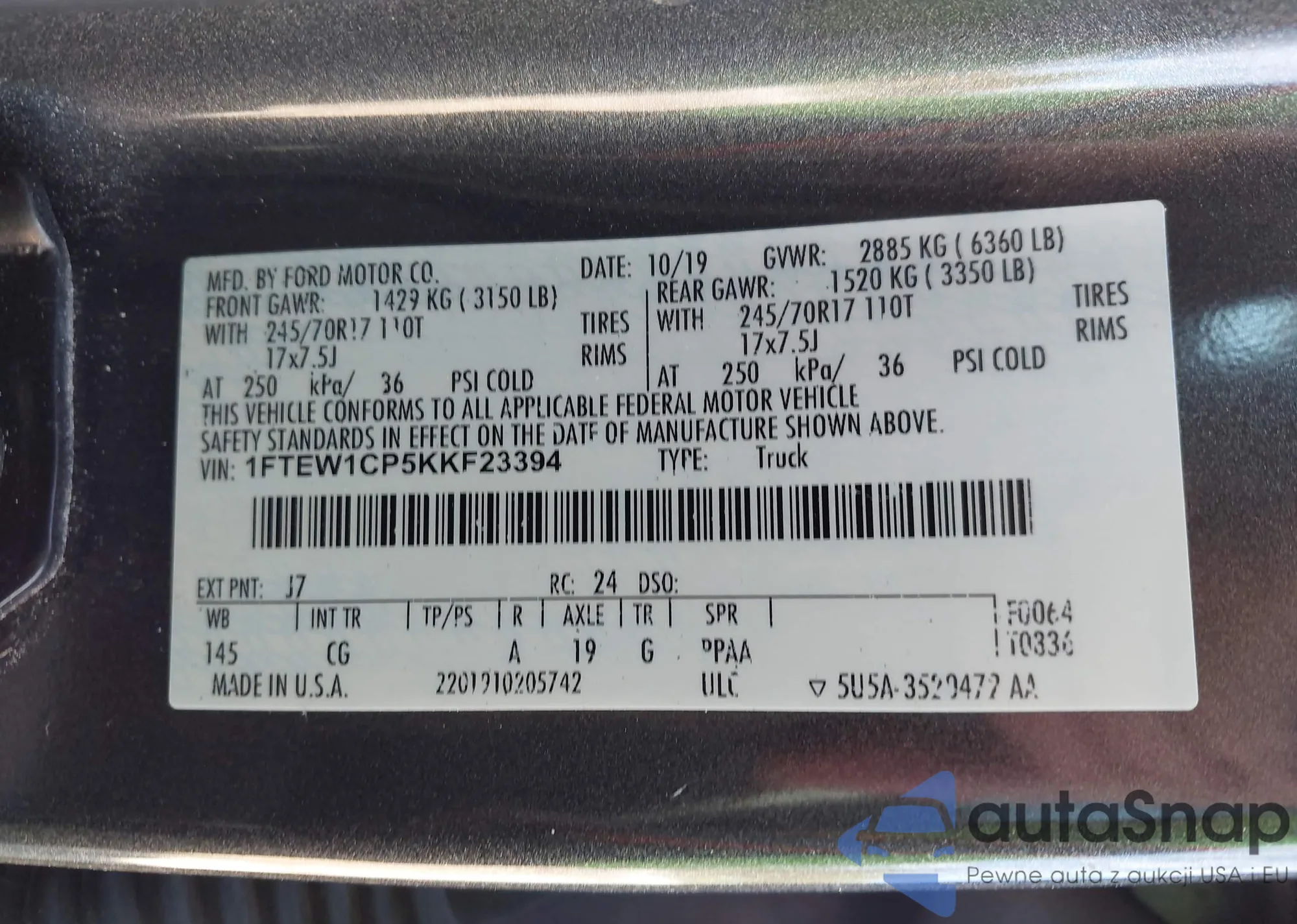 • VIN 1FTEW1CP5KKF23394