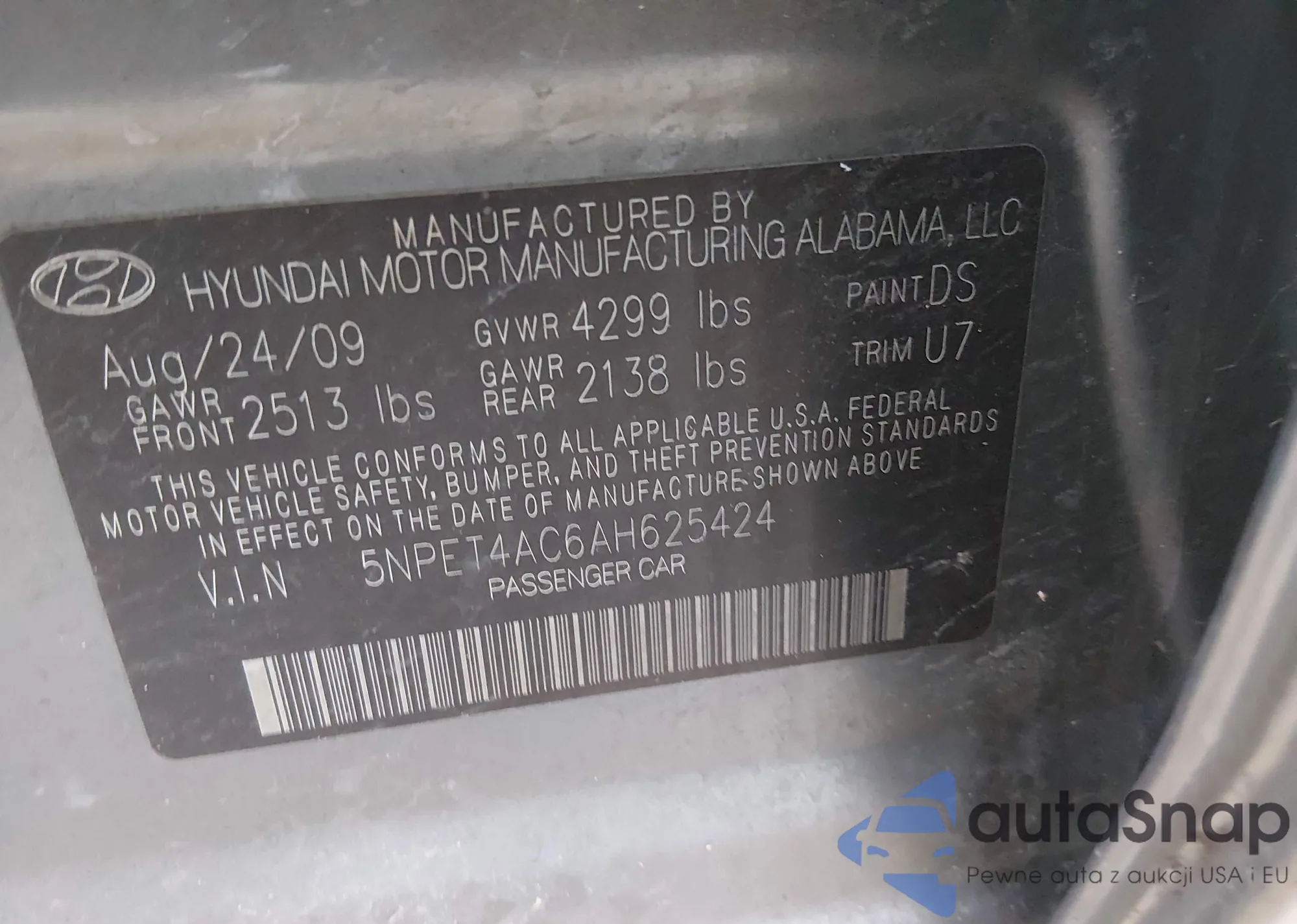 • VIN 5NPET4AC6AH625424