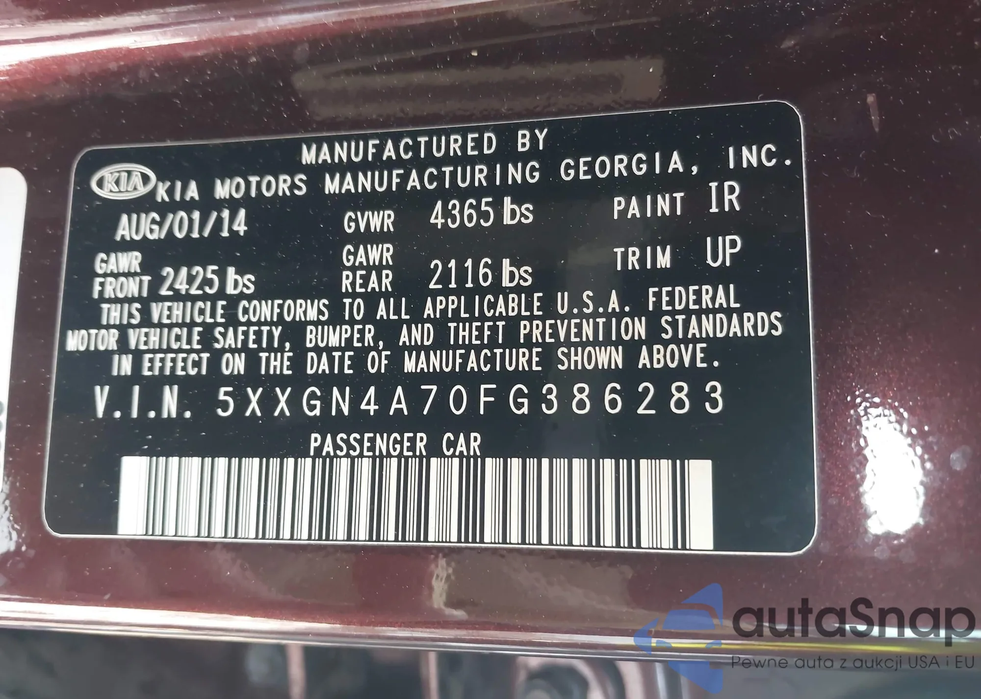 • VIN 5XXGN4A70FG386283