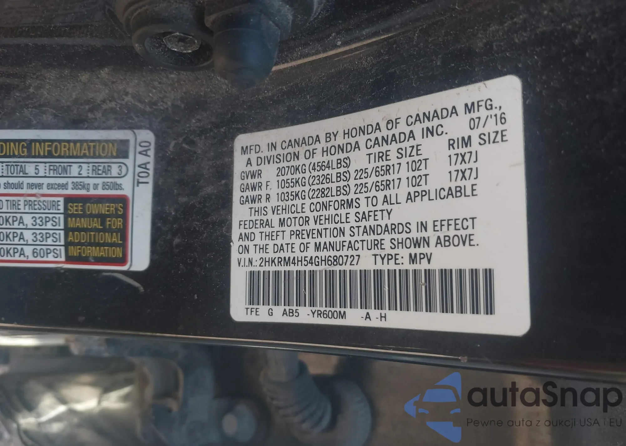 • VIN 2HKRM4H54GH680727