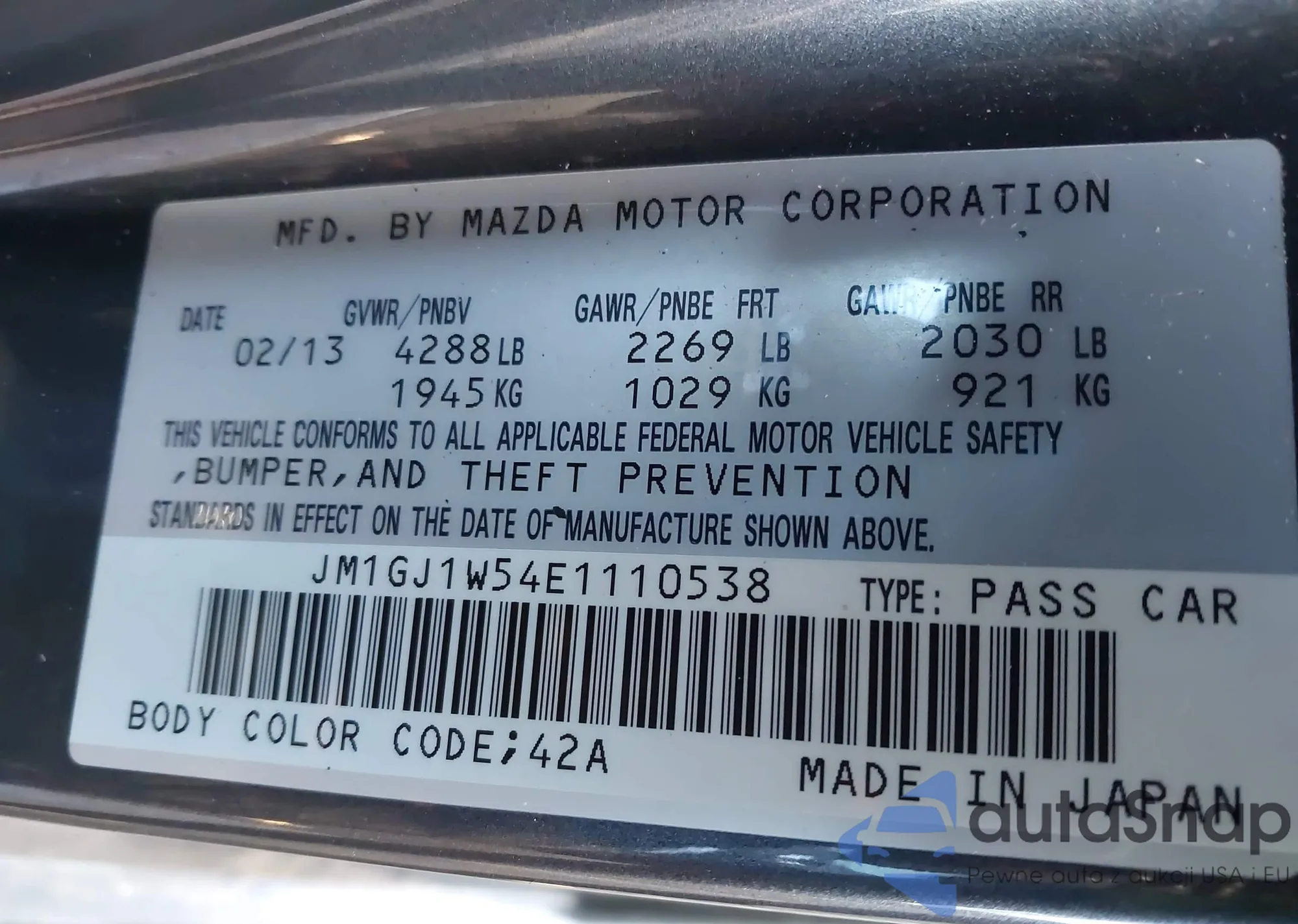LOT: 44150736 VIN: JM1GJ1W54E1110538