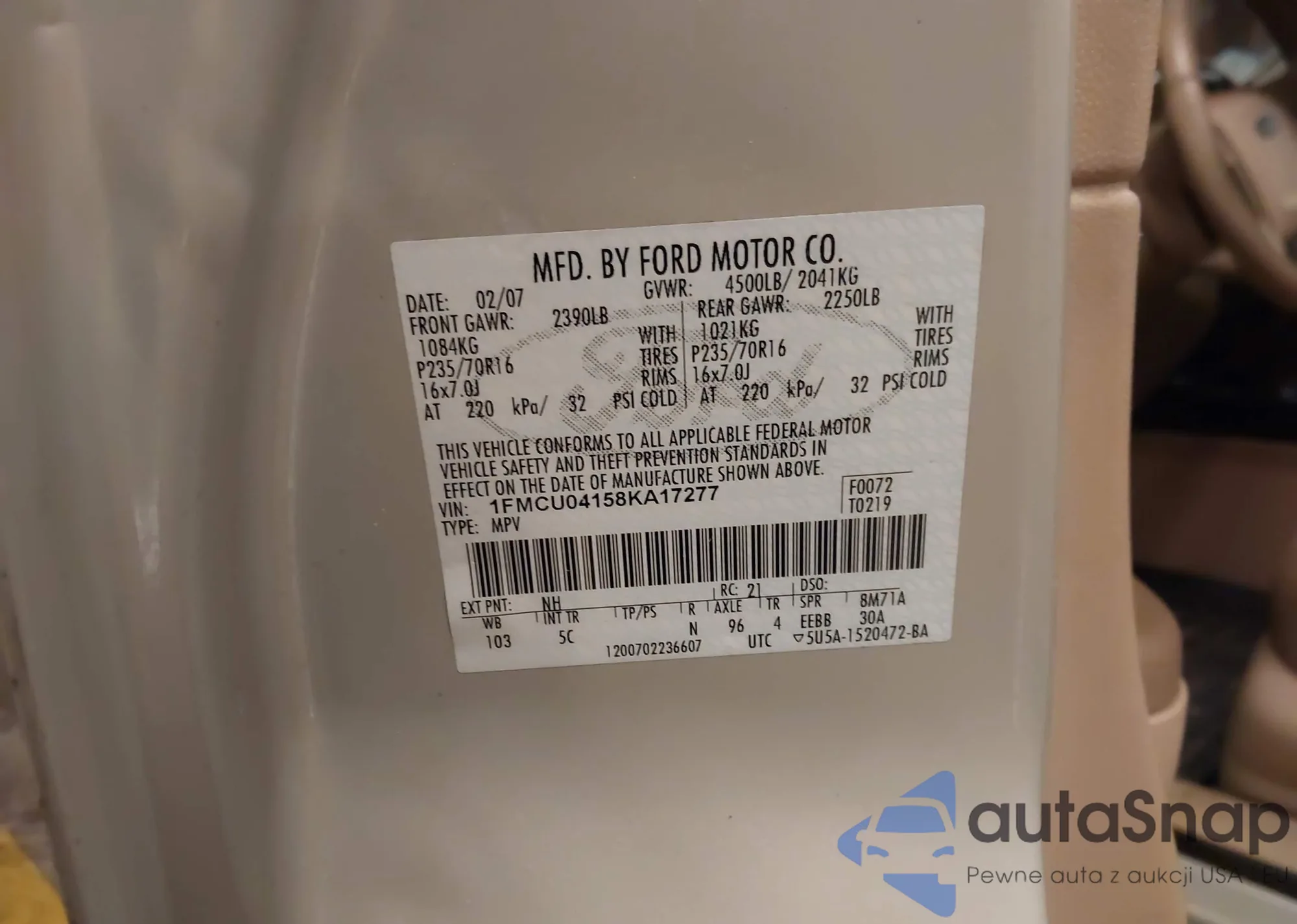 LOT: 44191614 VIN: 1FMCU04158KA17277