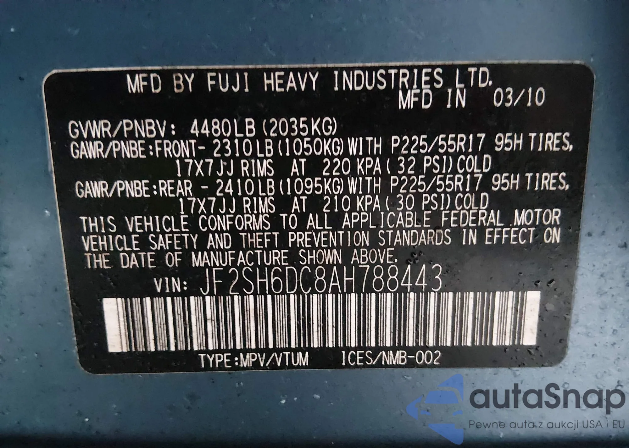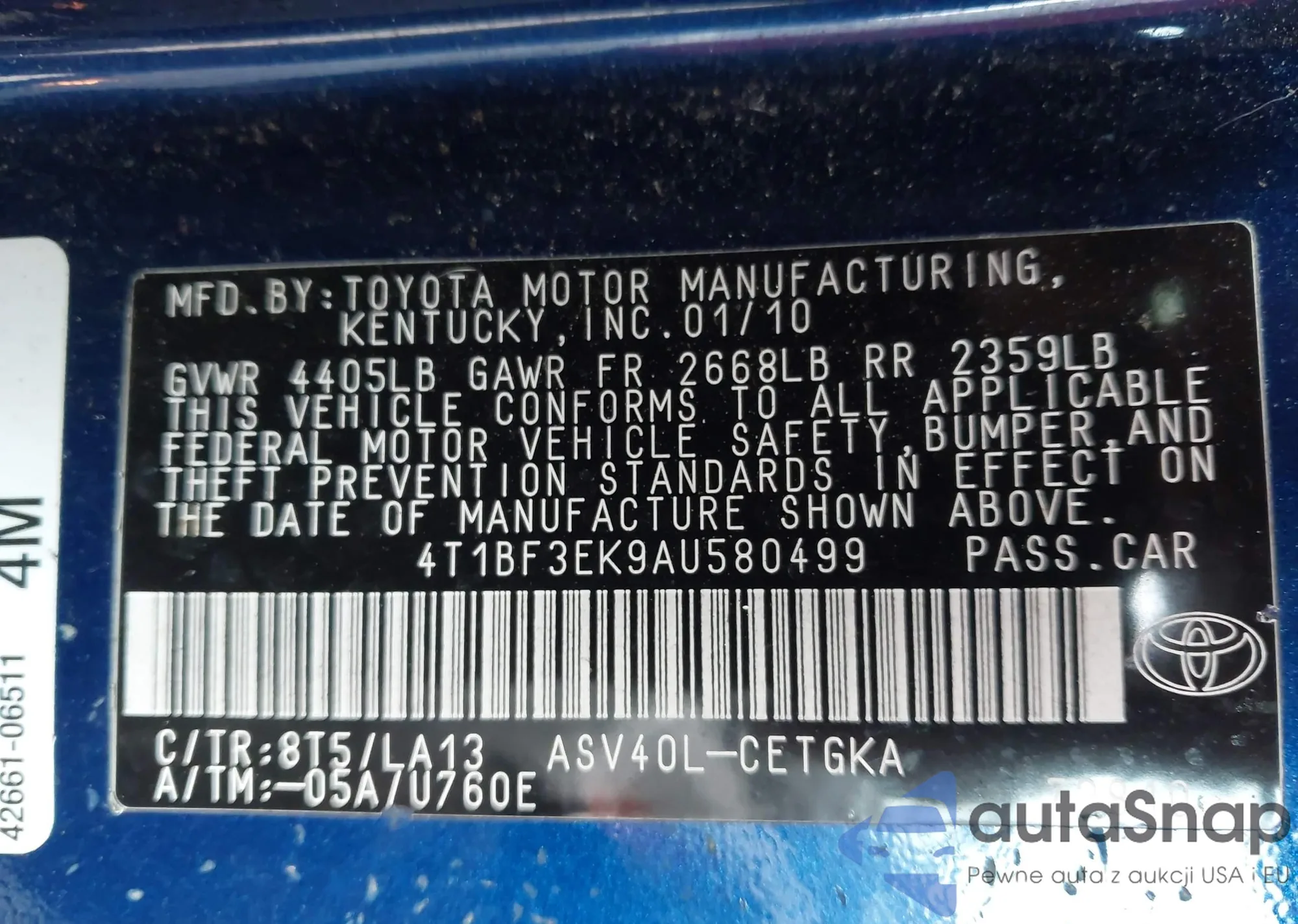 • VIN 4T1BF3EK9AU580499