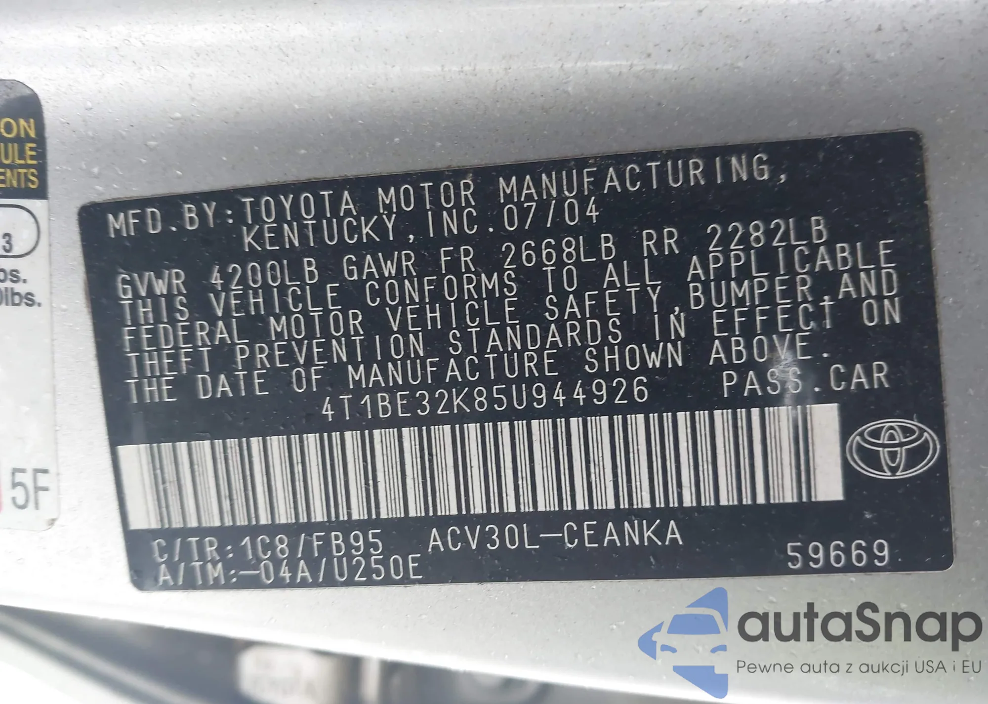 • VIN 4T1BE32K85U944926