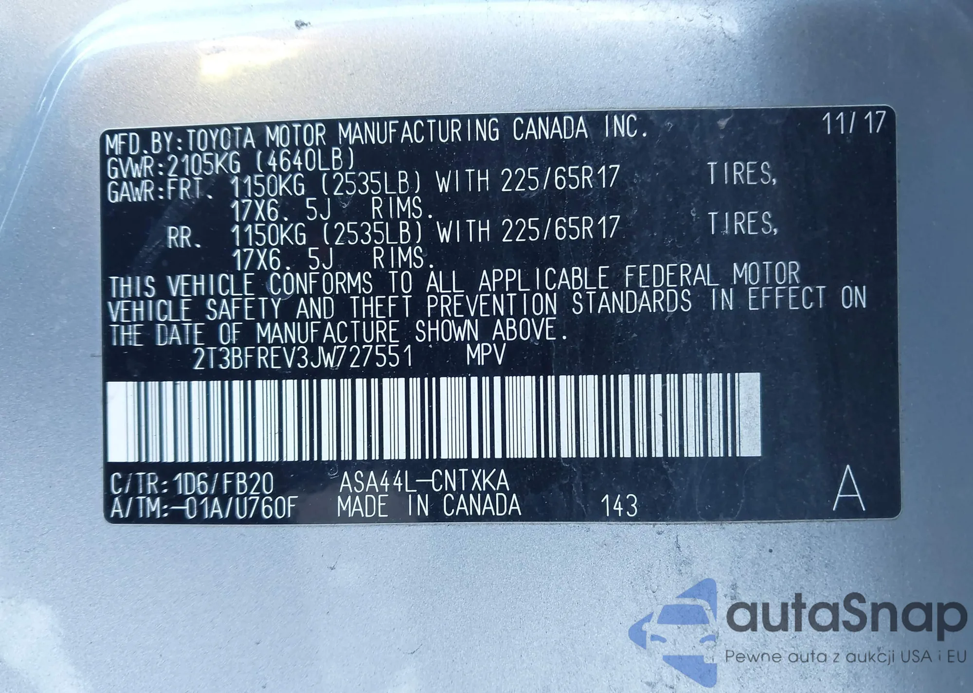 • VIN 2T3BFREV3JW727551