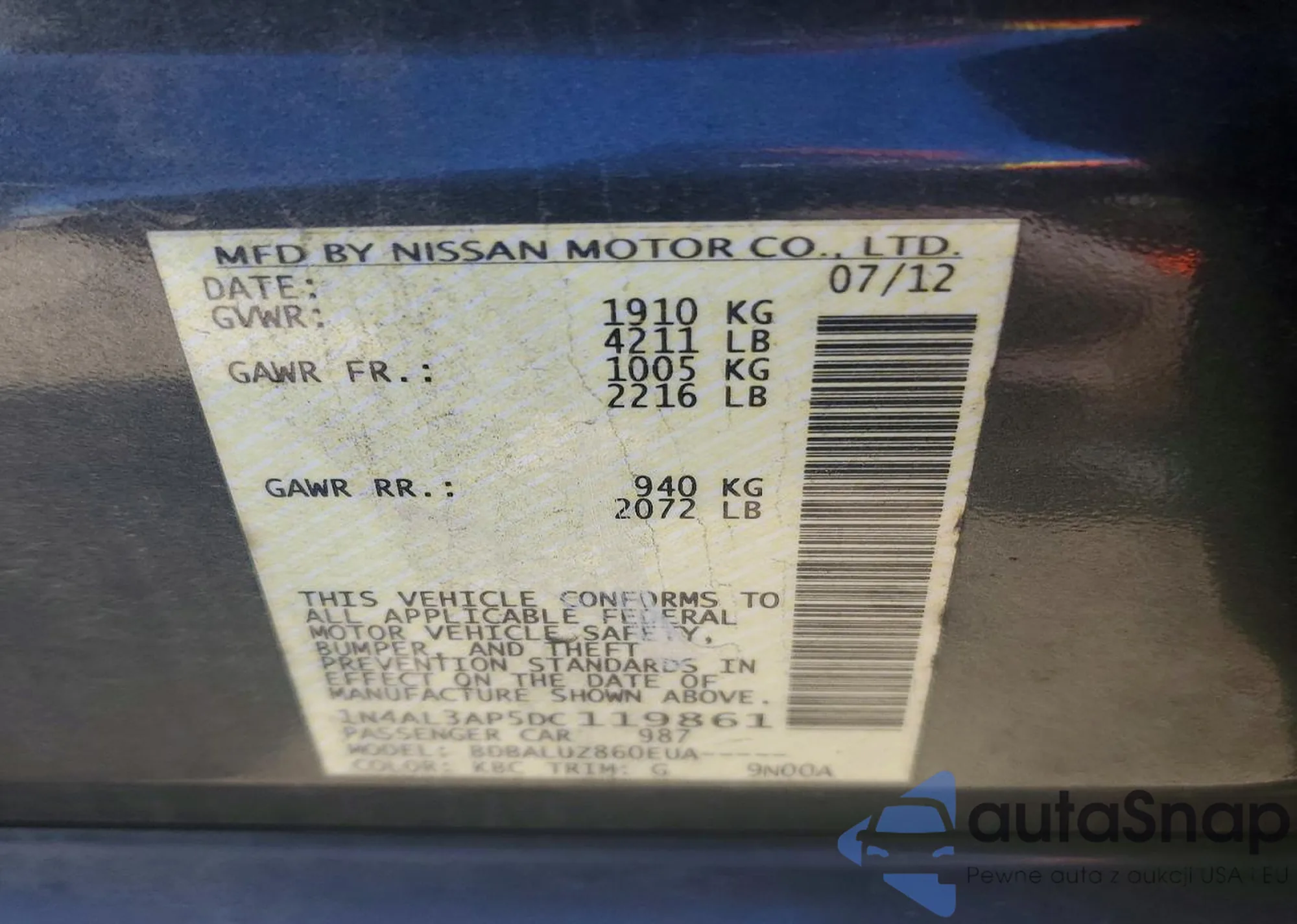 LOT: 73729105 VIN: 1N4AL3AP5DC119861