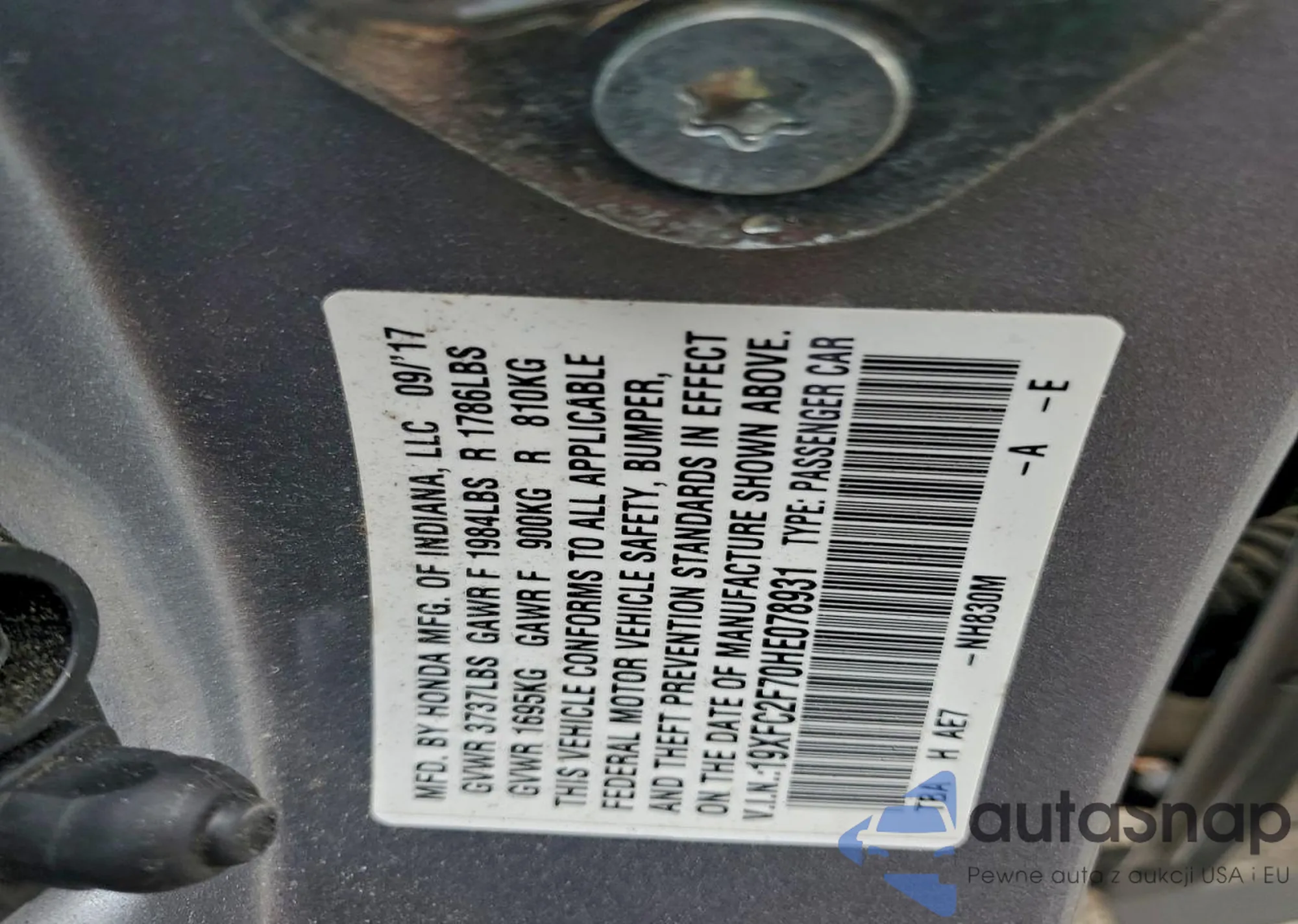 • VIN 19XFC2F70HE078931