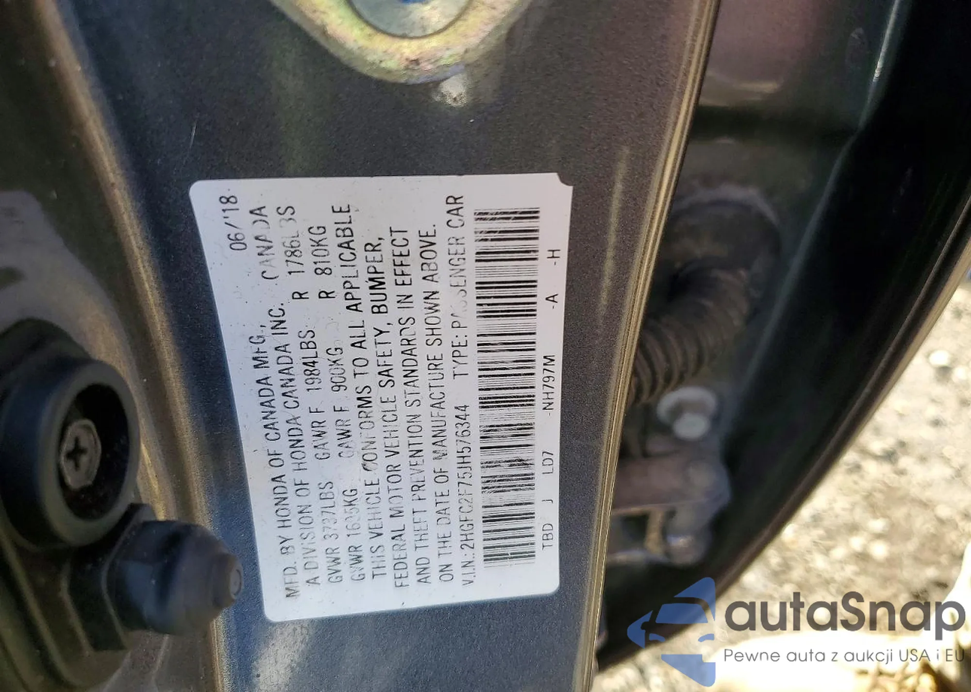 • VIN 2HGFC2F75JH576344