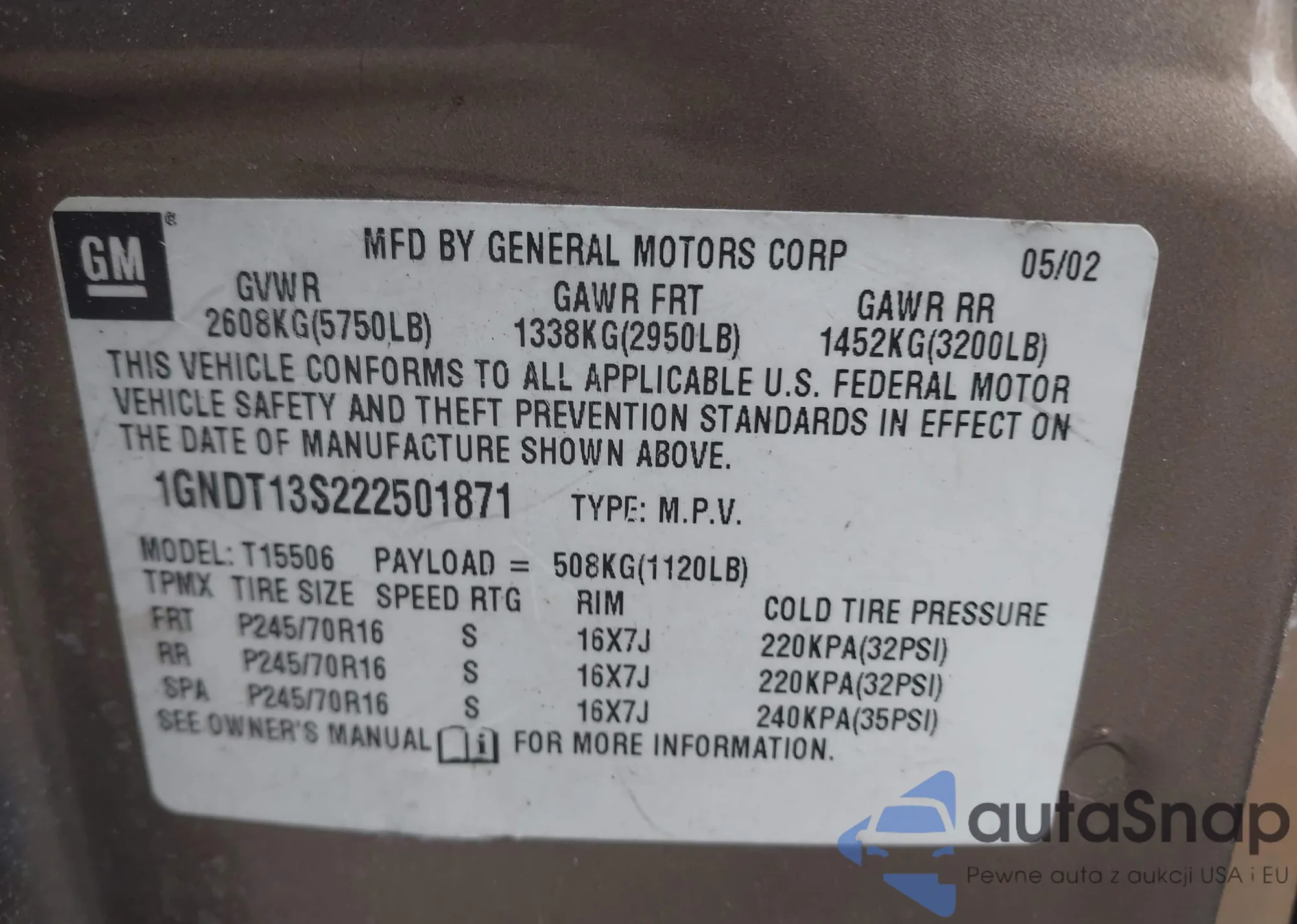 • VIN 1GNDT13S222501871