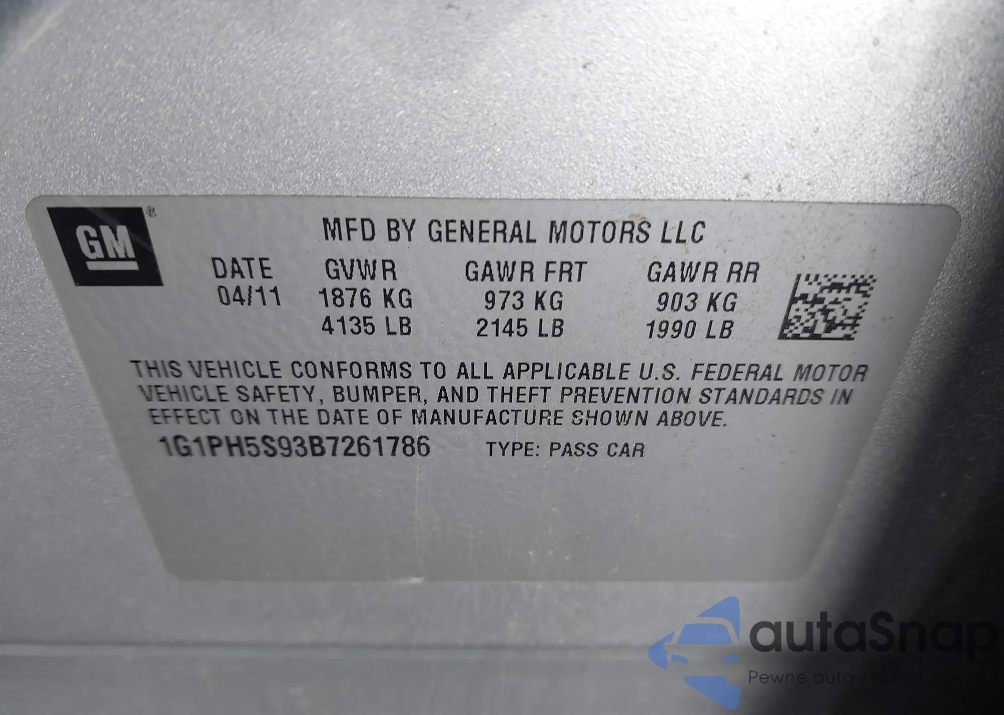 LOT: 44380403 VIN: 1G1PH5S93B7261786