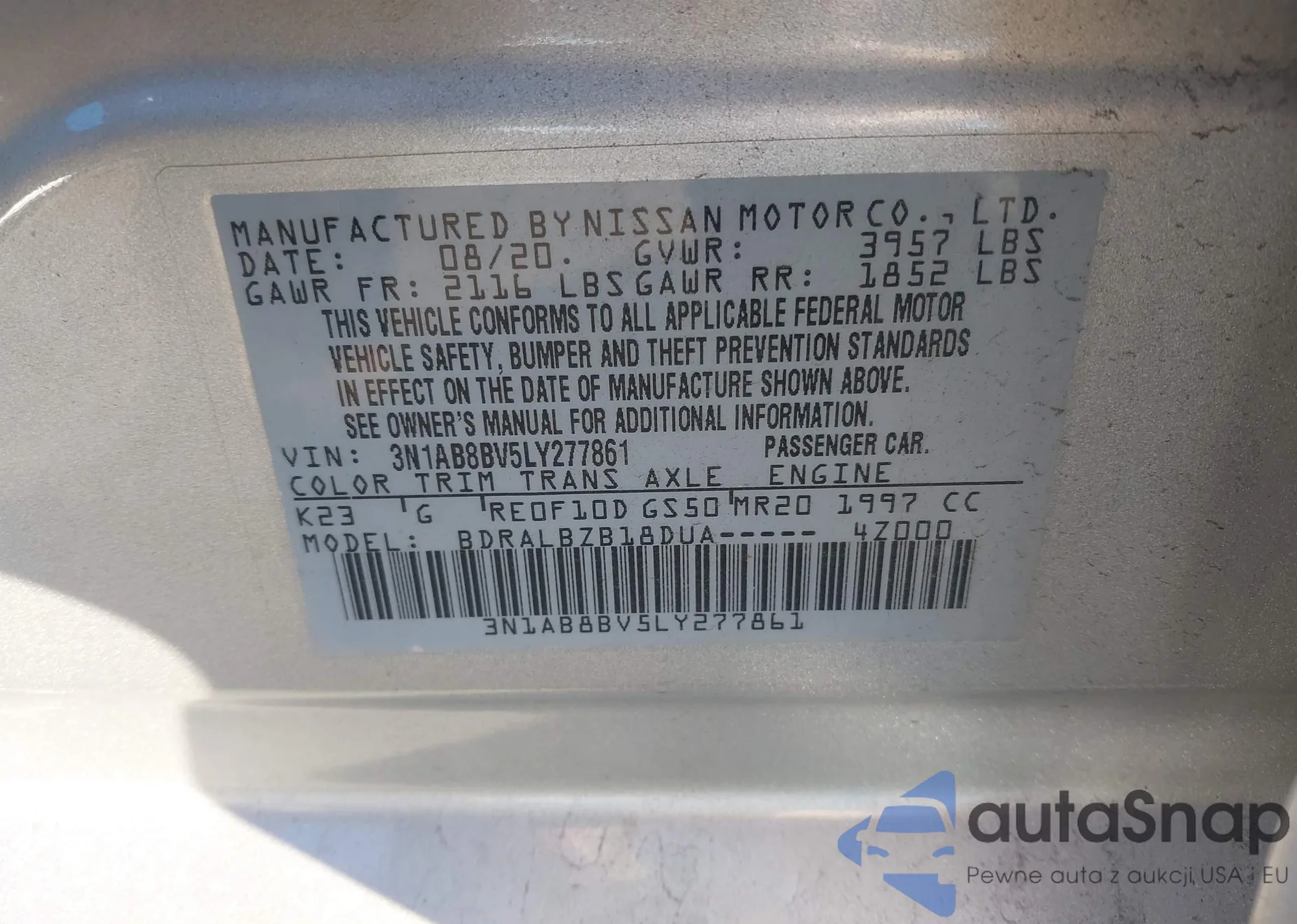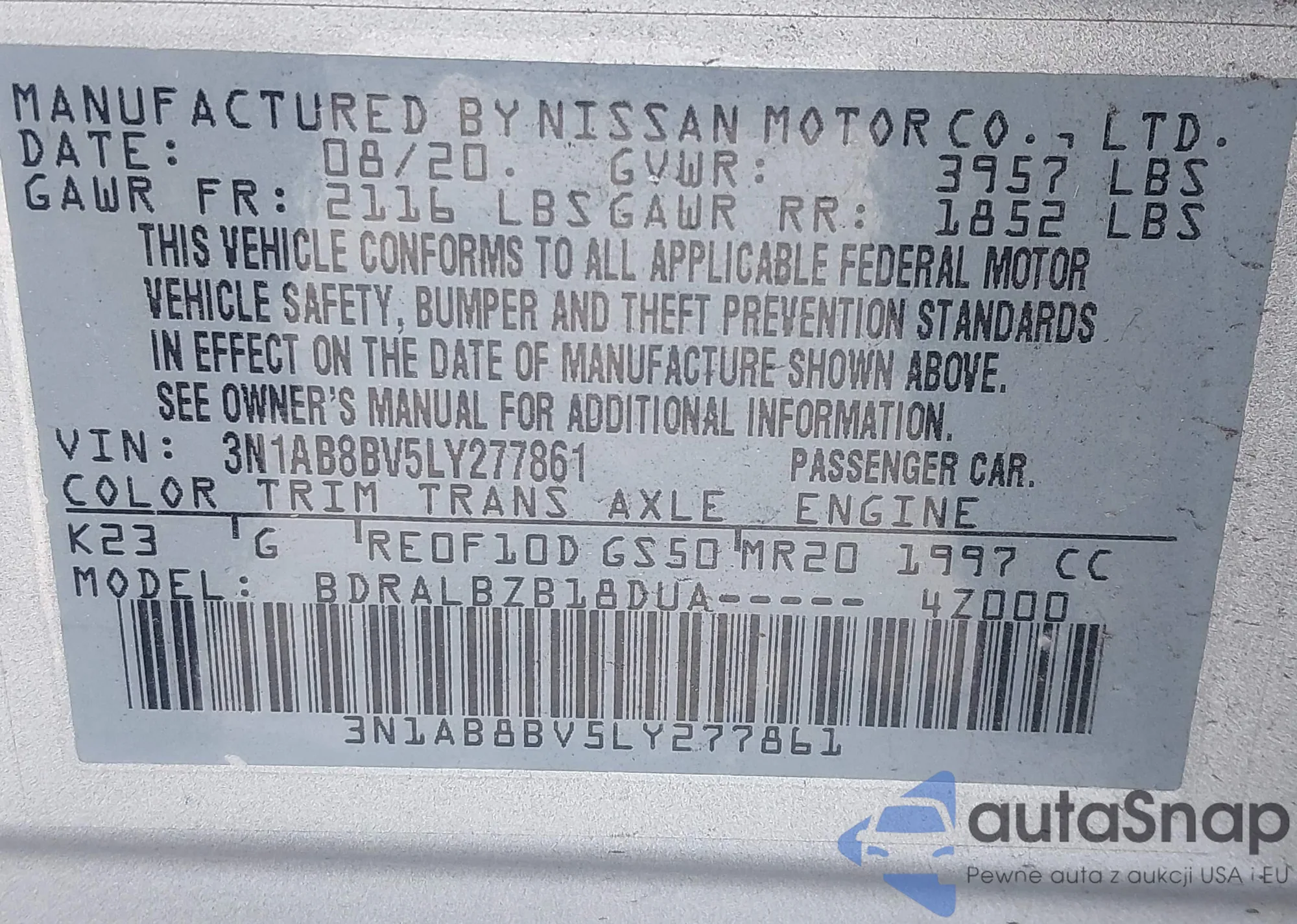 • VIN 3N1AB8BV5LY277861