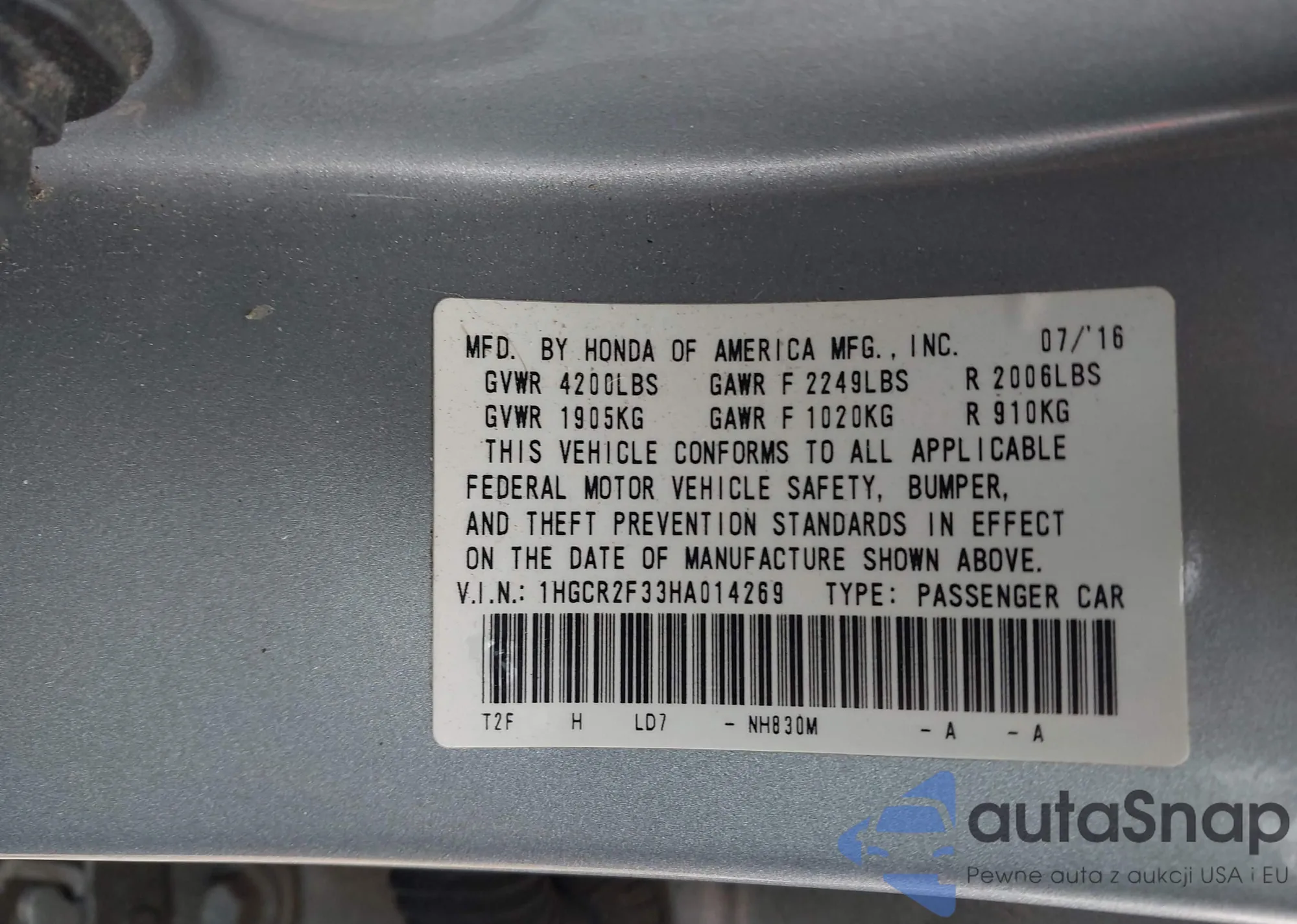 LOT: 44305569 VIN: JHMGK5H57GX012202