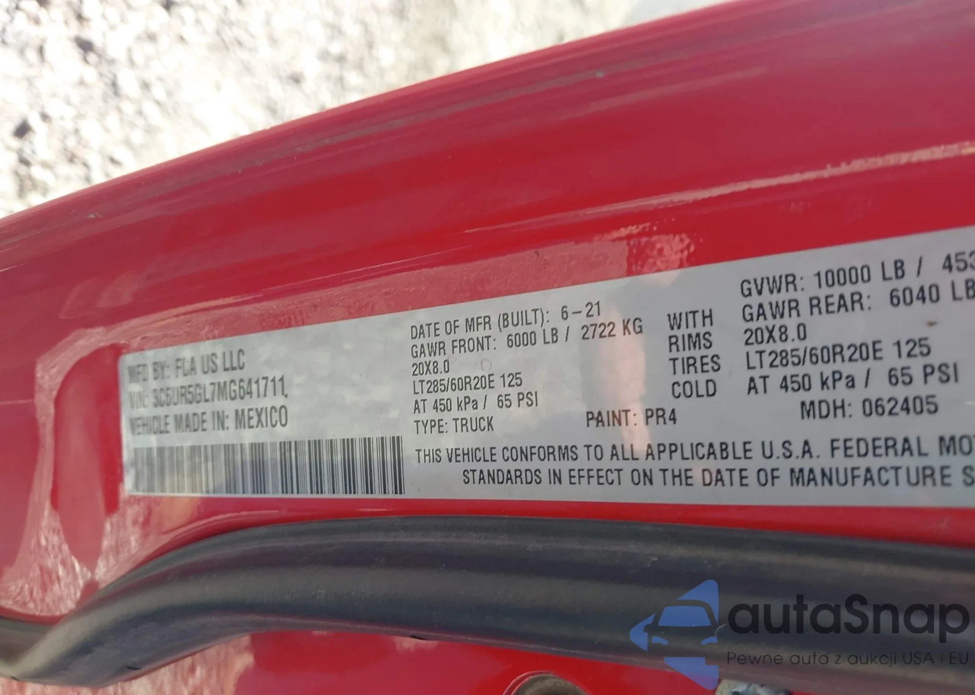 • VIN 3C6UR5GL7MG641711