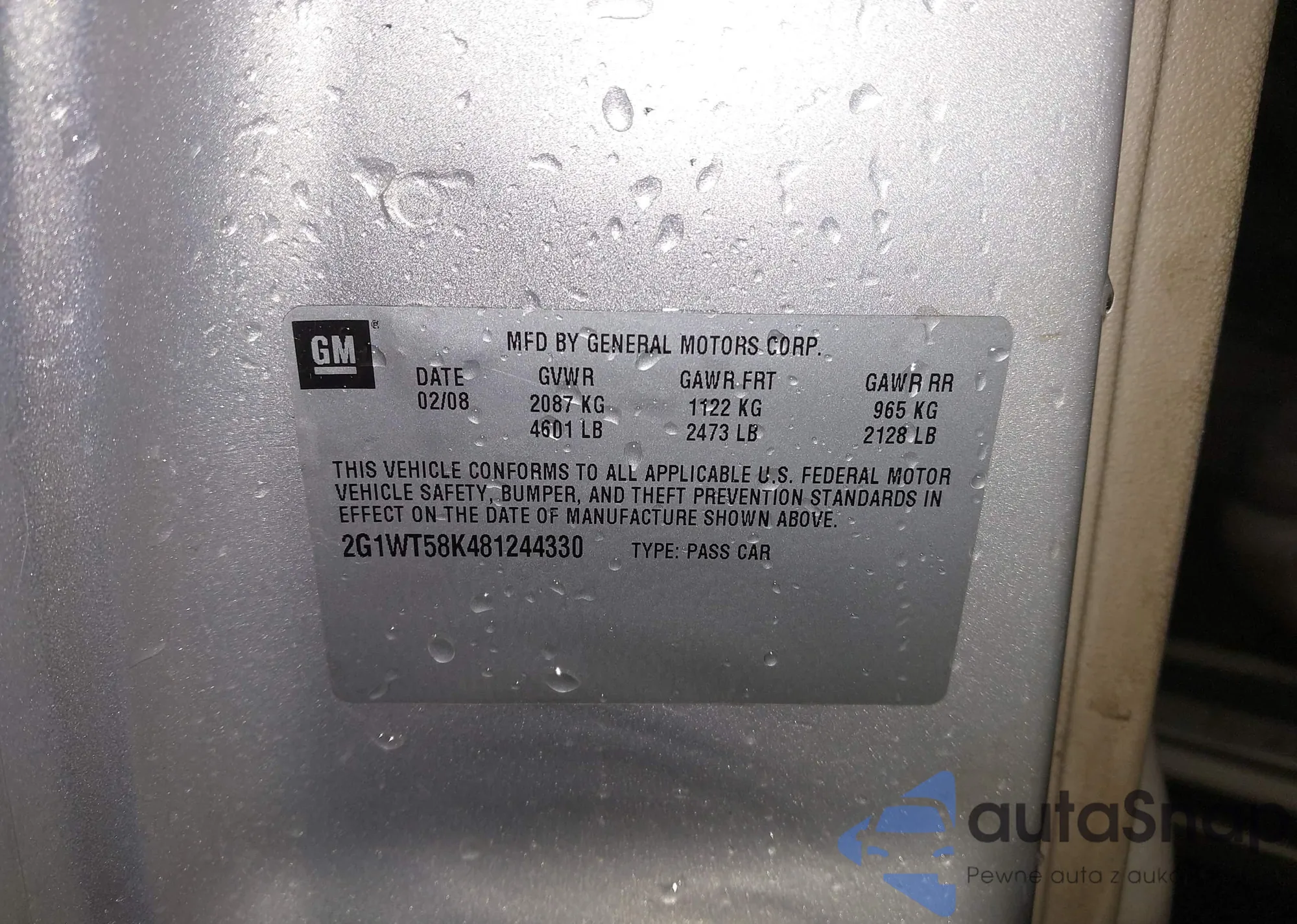 LOT: 44012005 VIN: 2G1WT58K481244330