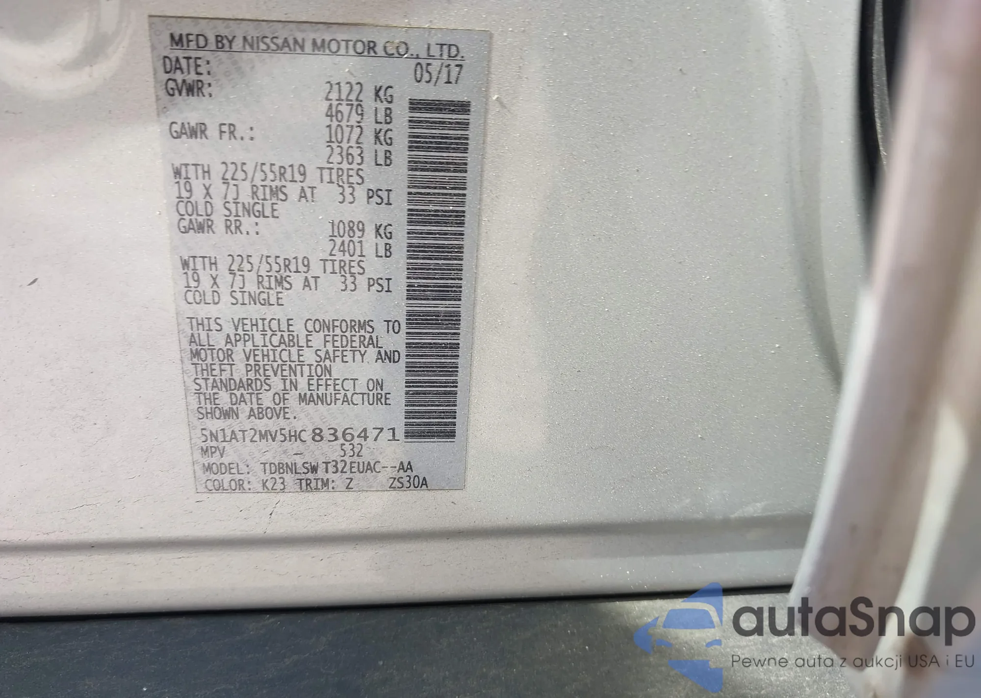 LOT: 44310808 VIN: 5N1AT2MV5HC836471