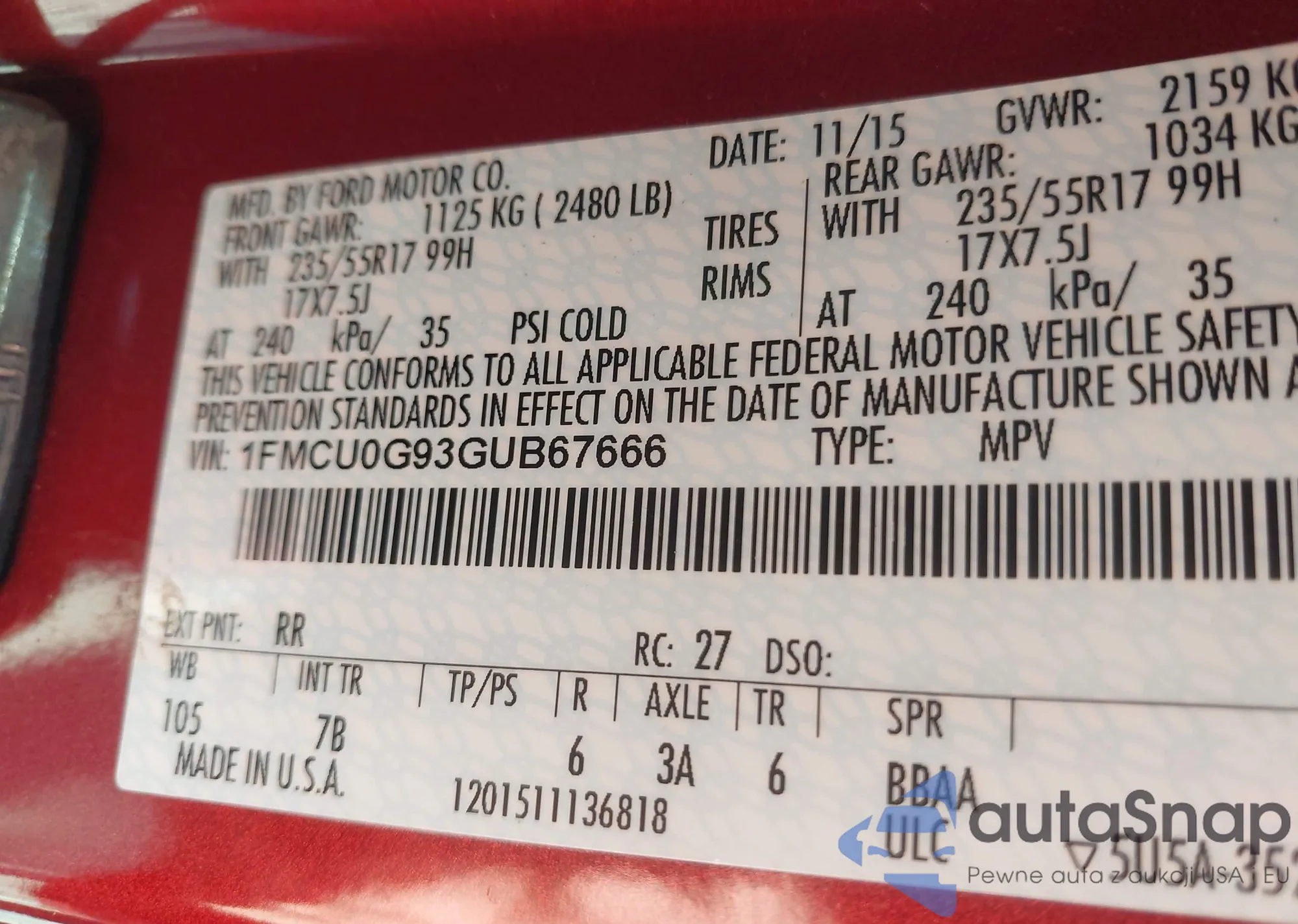• VIN 1FMCU0G93GUB67666