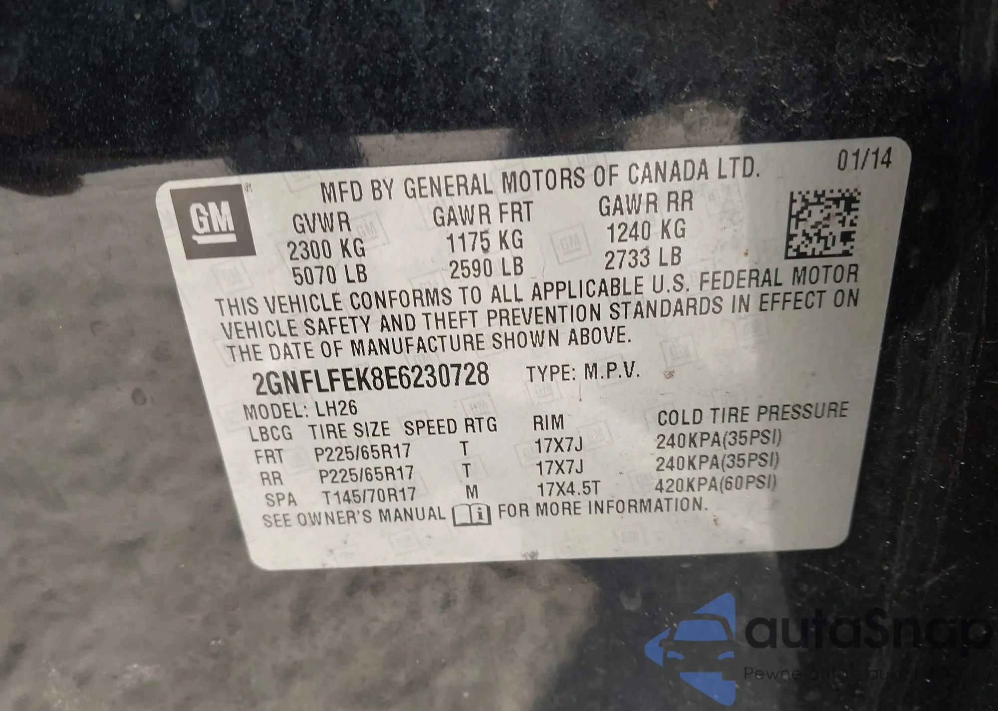 • VIN 2GNFLFEK8E6230728