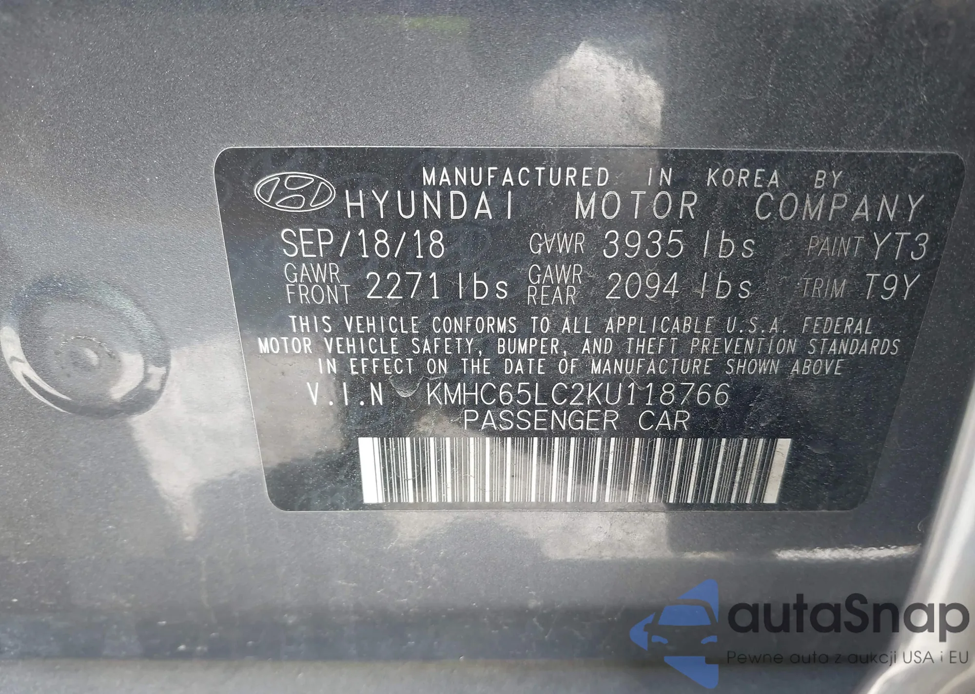 LOT: 44318120 VIN: KMHC65LC2KU118766