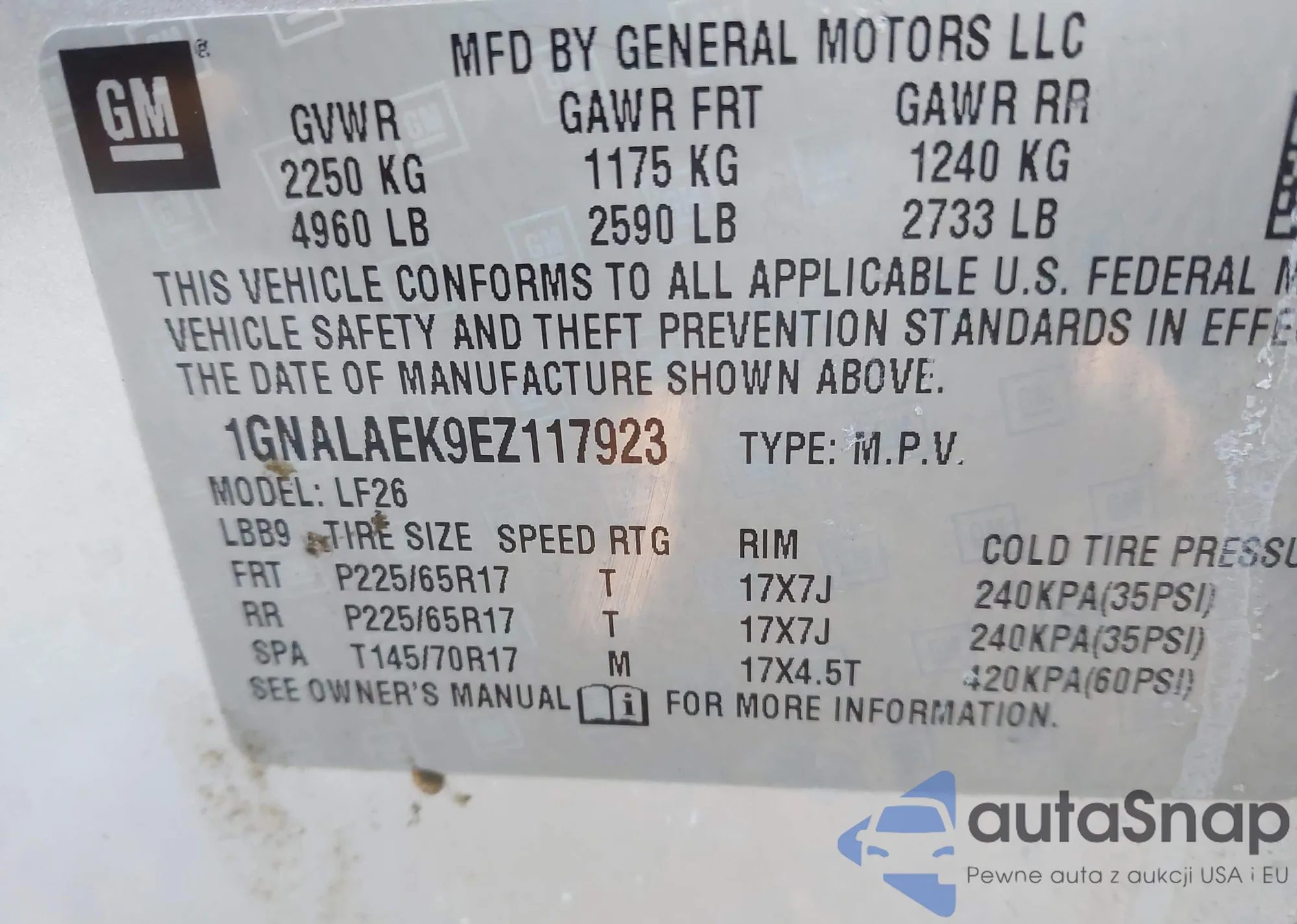 • VIN 1GNALAEK9EZ117923
