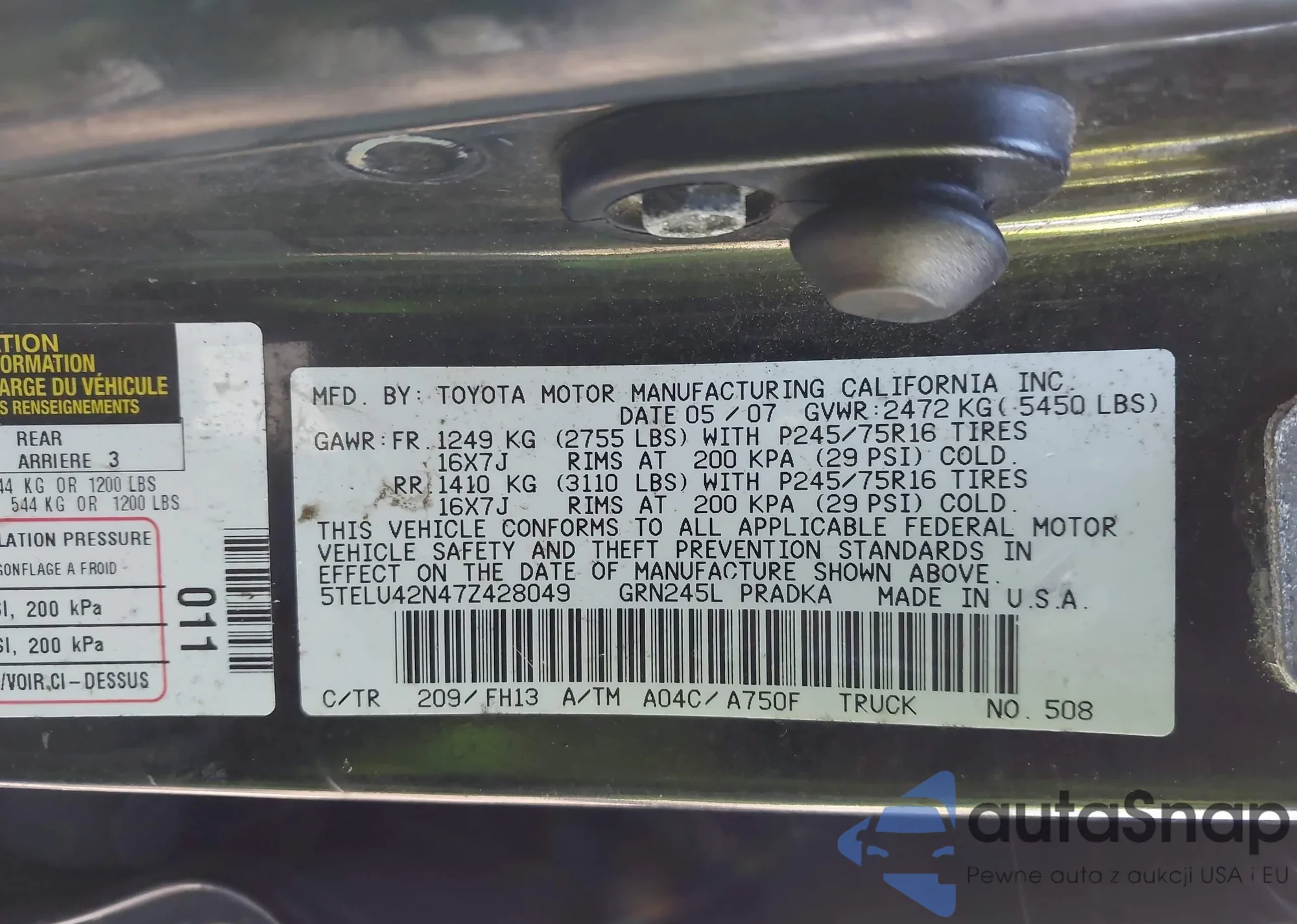 • VIN 5TELU42N47Z428049