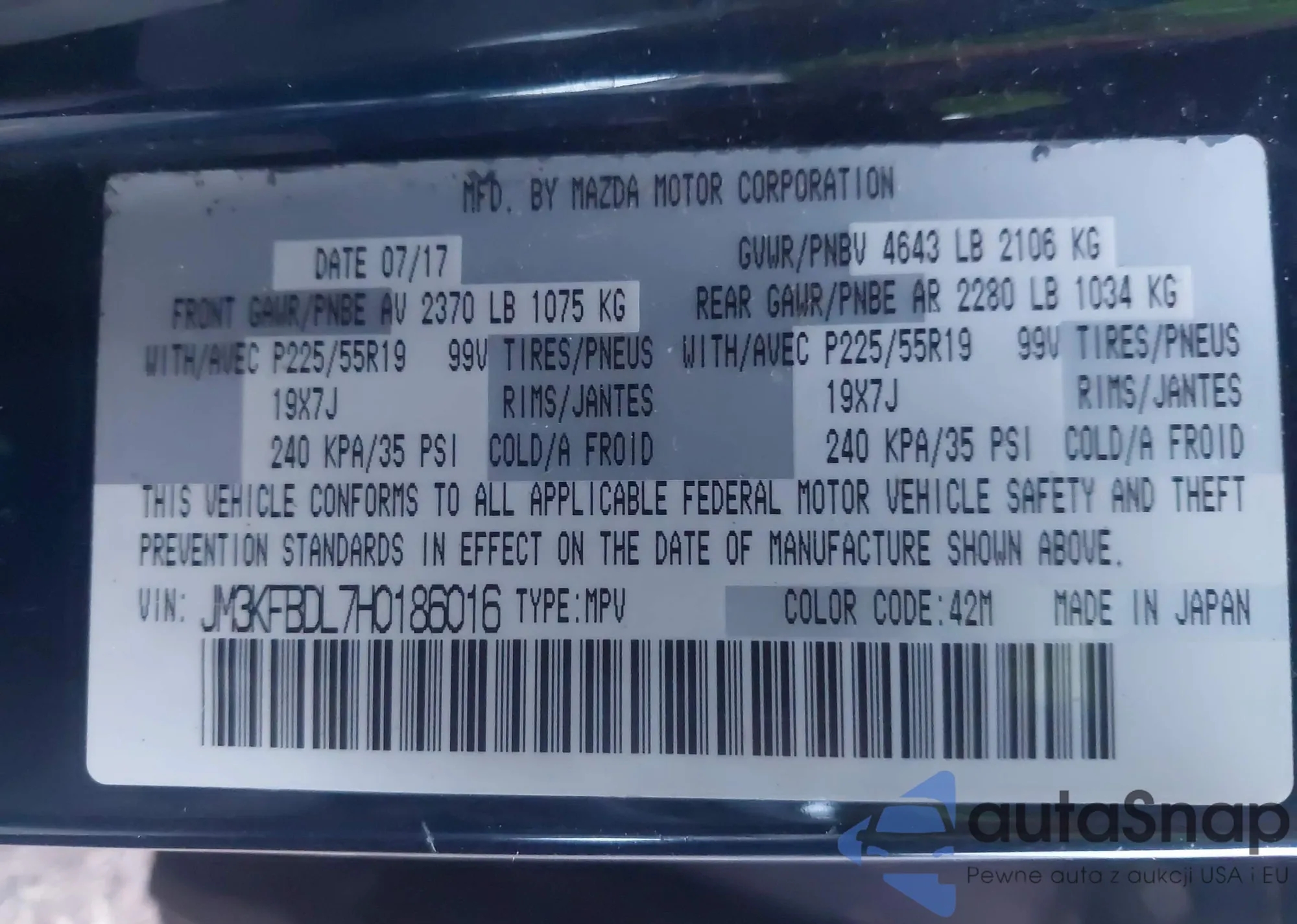 LOT: 43645511 VIN: JM3KFBDL7H0186016