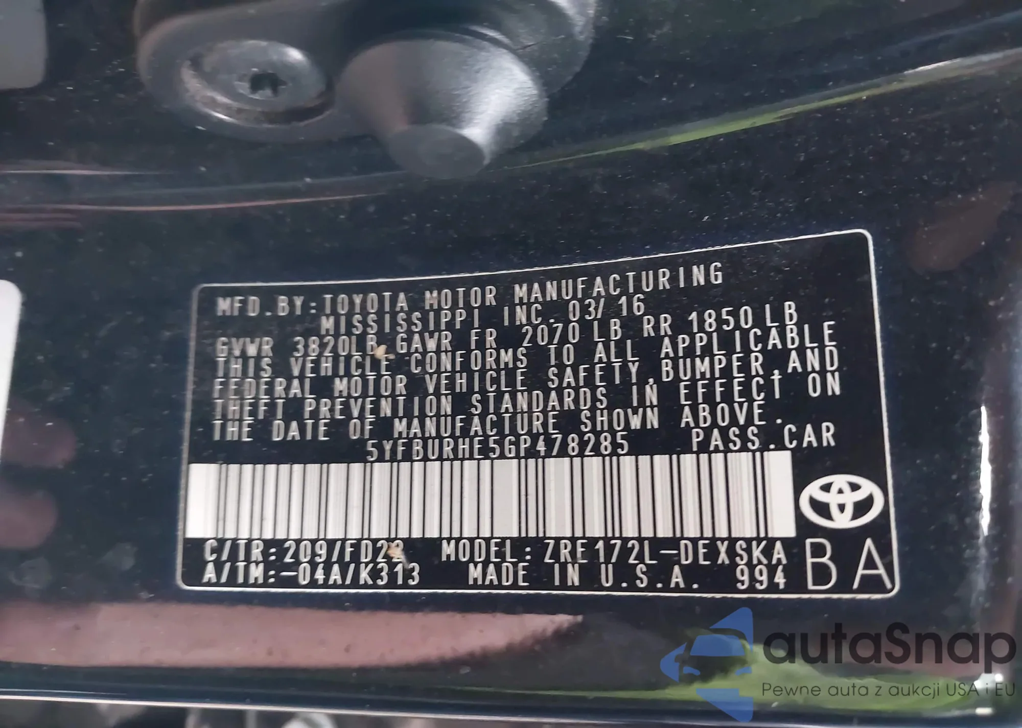 LOT: 43673337 VIN: 1HGCM56393A085016