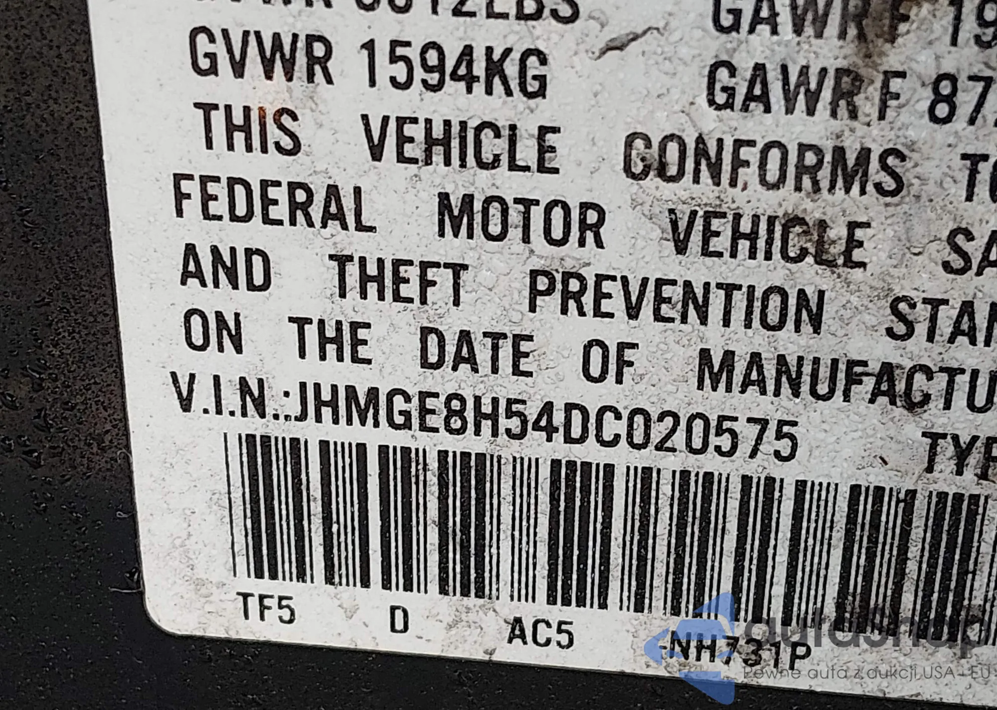 • VIN JHMGE8H54DC020575