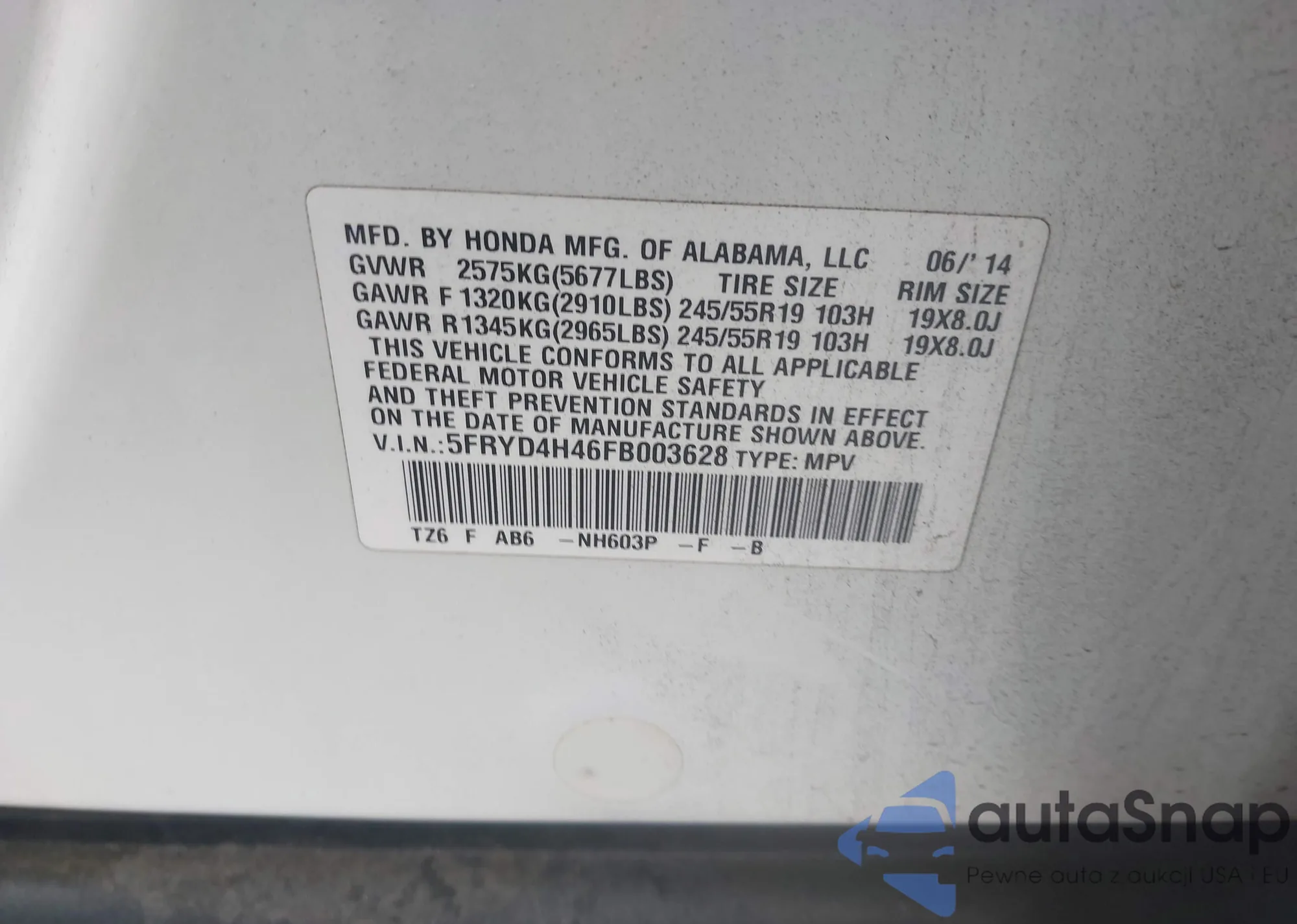 • VIN 5FRYD4H46FB003628