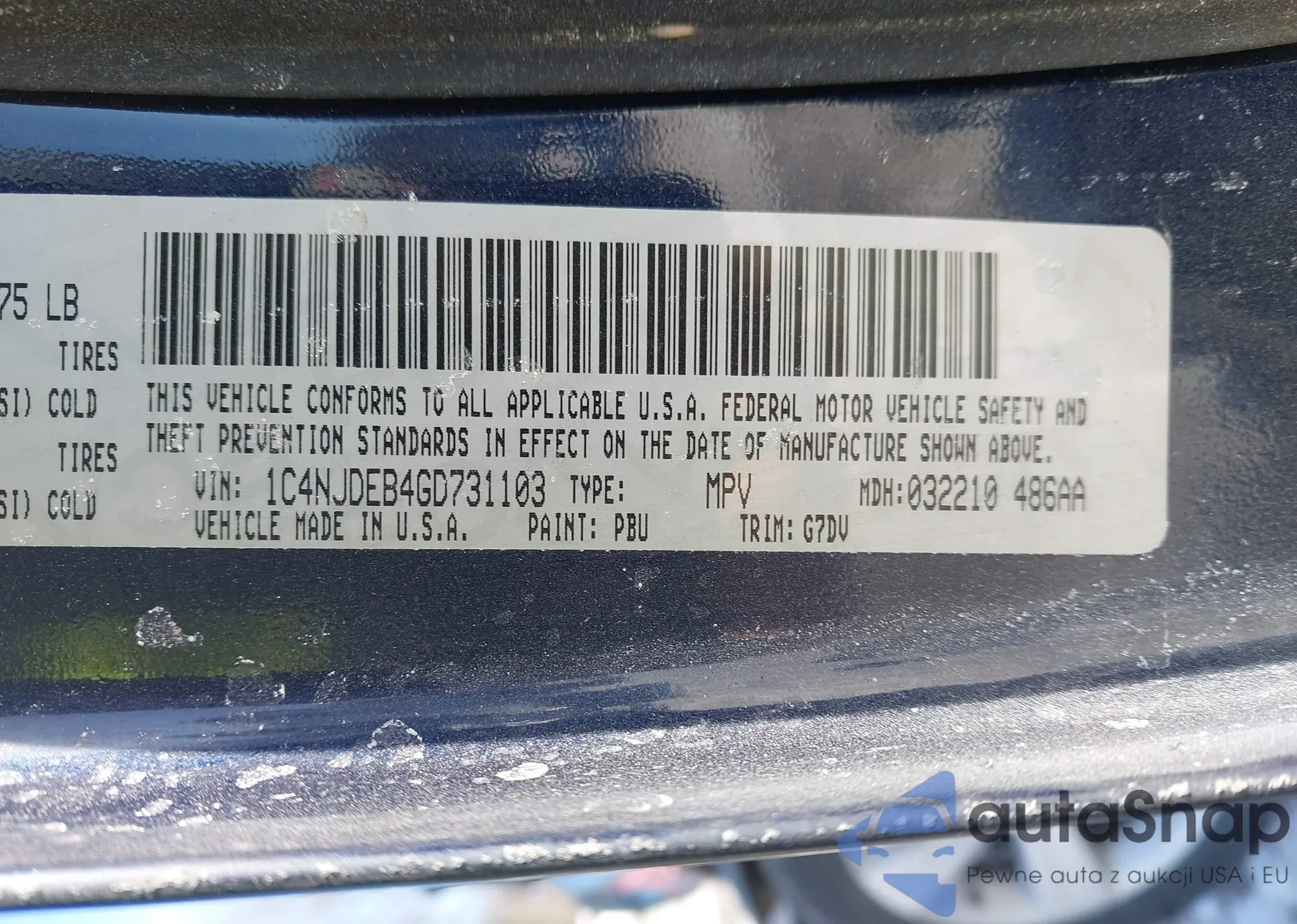 • VIN 1C4NJDEB4GD731103