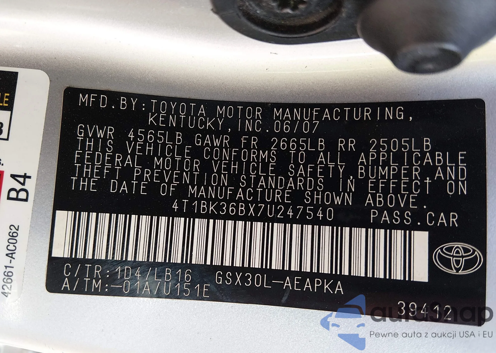 • VIN 4T1BK36BX7U247540