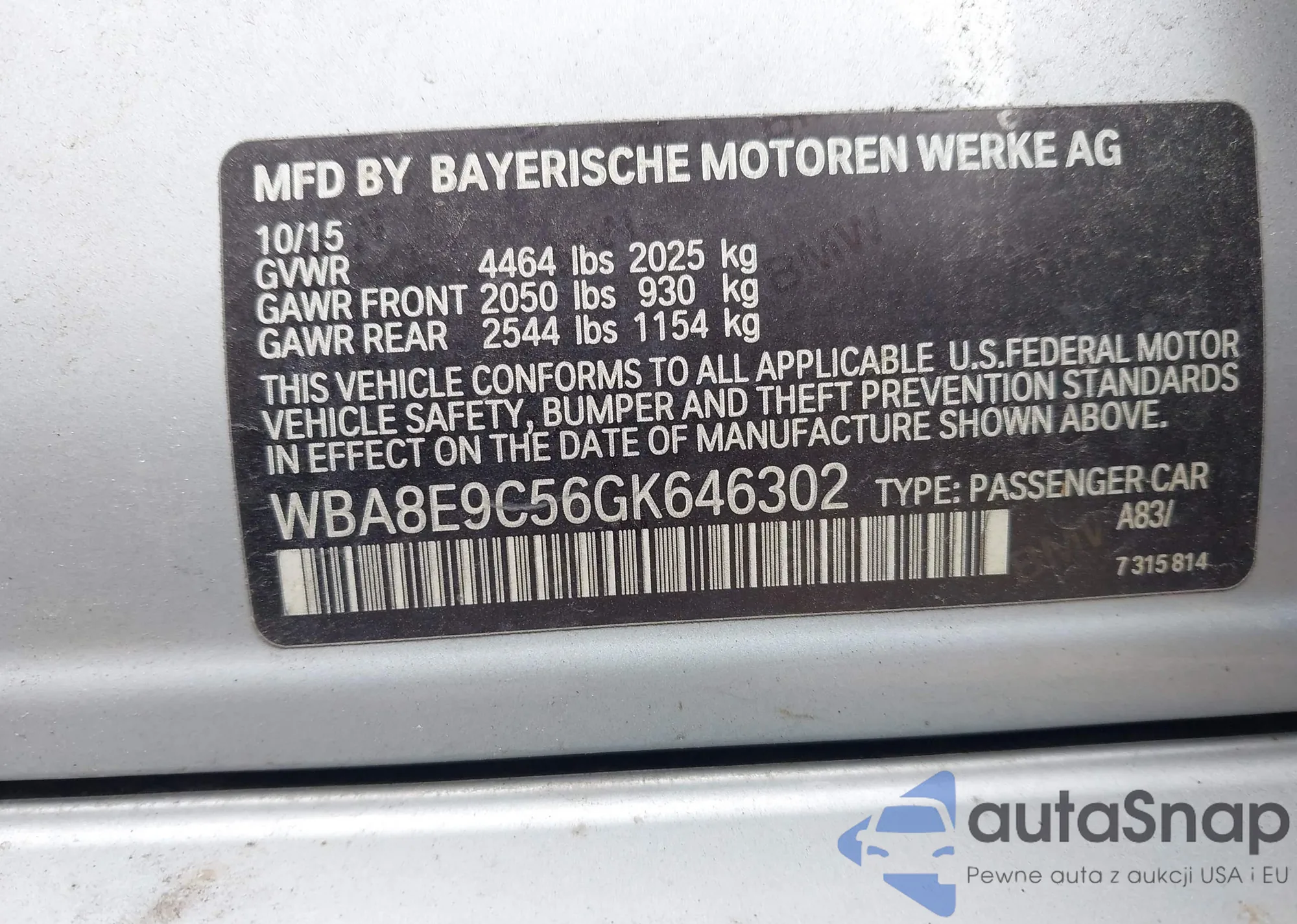 • VIN WBA8D9G30HNU66521