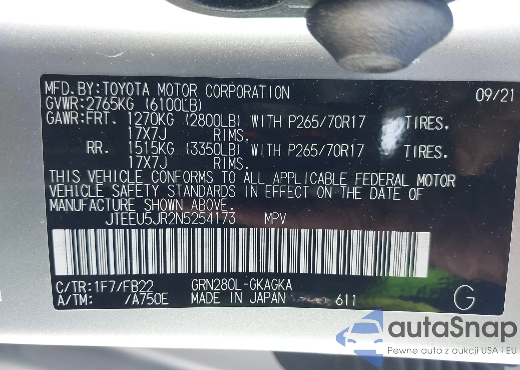 LOT: 43568857 VIN: JTEEP21A560137363