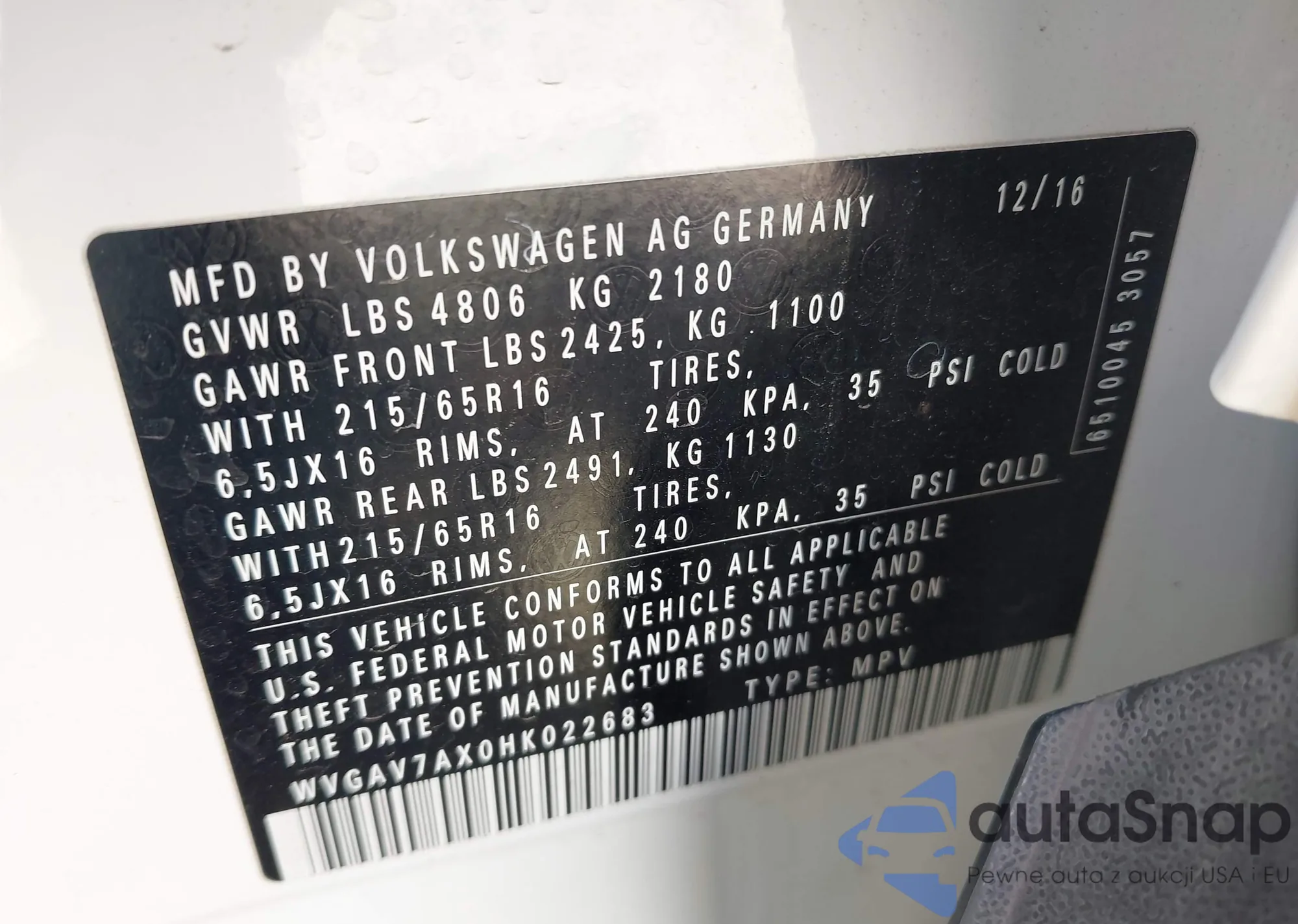 • VIN WVGAV7AX0HK022683