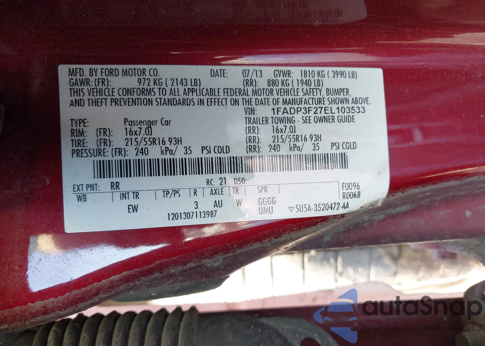 • VIN 1FADP3F27EL103533