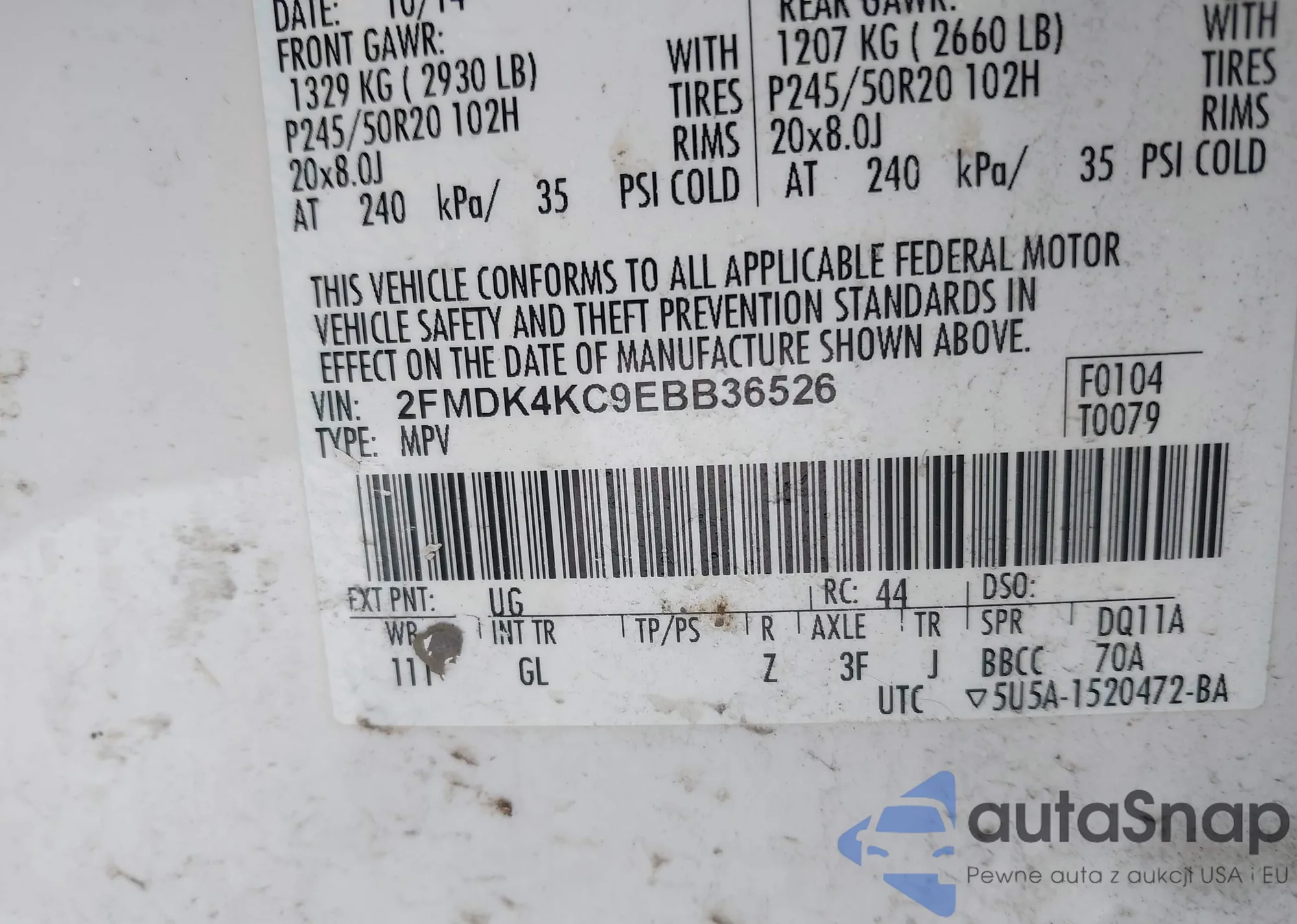 LOT: 44285979 VIN: 2FMDK4KC9EBB36526