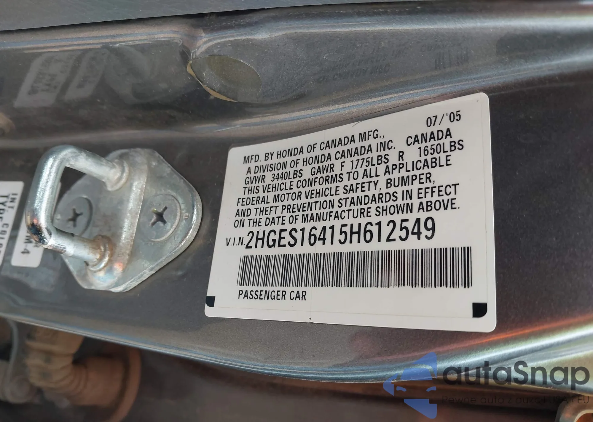 LOT: 44370057 VIN: 2HGES16415H612549