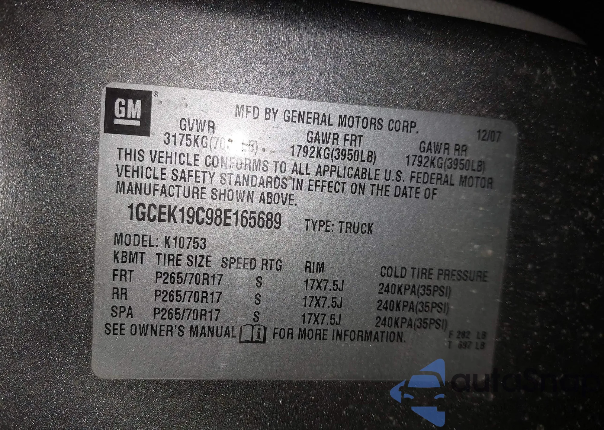 • VIN 1GCEK19C98E165689