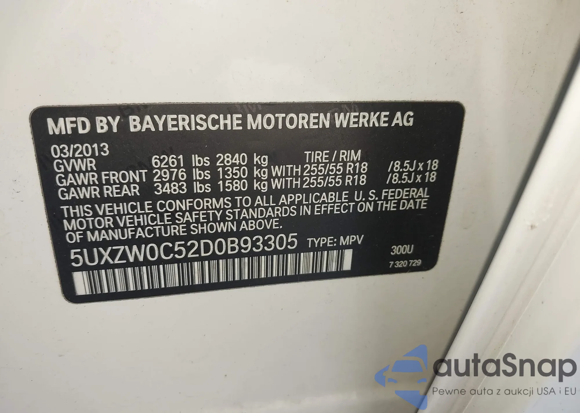 • VIN 5UXZW0C52D0B93305
