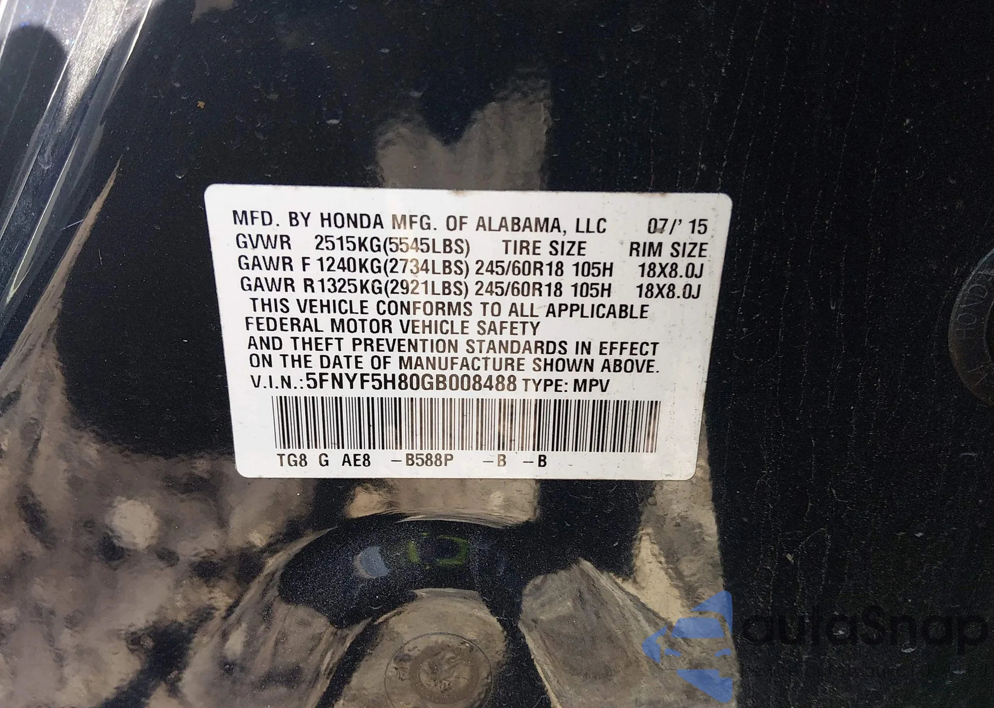• VIN 5FNYF5H80GB008488